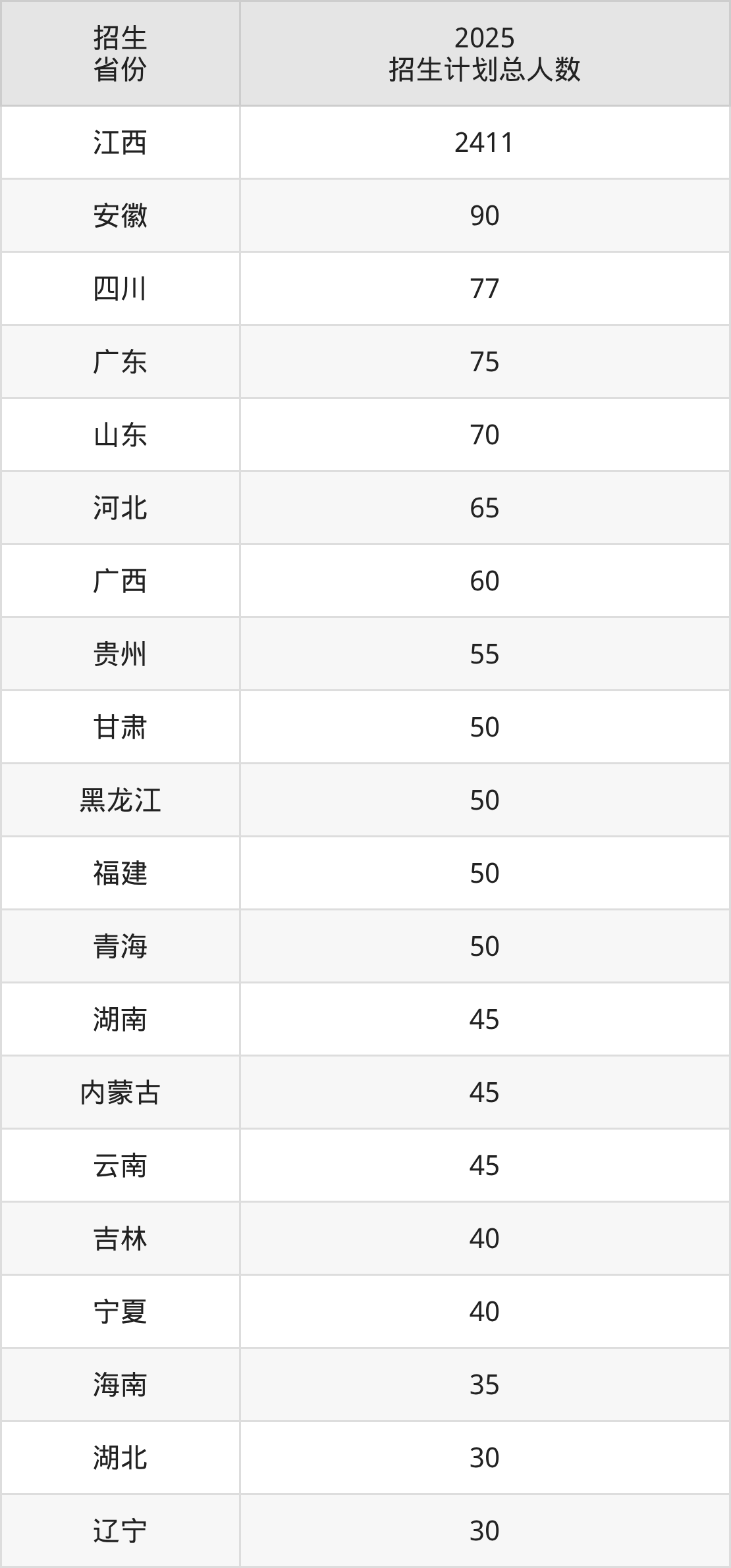2025年江西财经职业学院面向全国27个省市开展专科招生;招生专业共41个,招生人数共3535人。2025年在江西省招生计划总人数是2411人,其中,江西财经职业学院在江西省招生人数最多的是大数据与会计。江西财经职业学院在各省具体招生人数情况如下表。