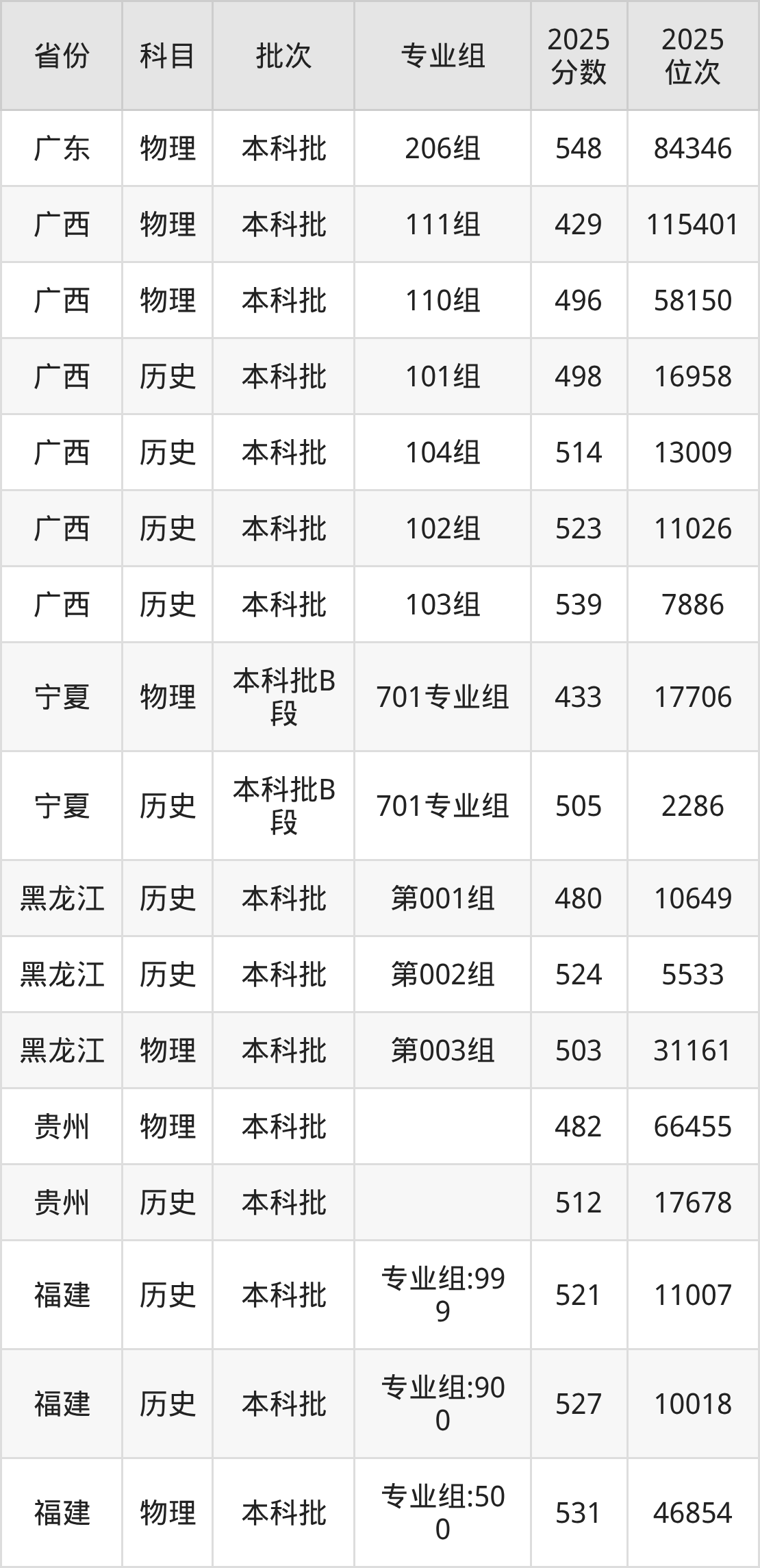 普通类本科物理类最低486分,本科历史类最低524分