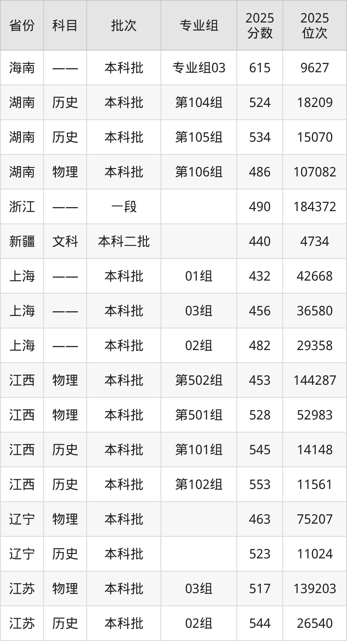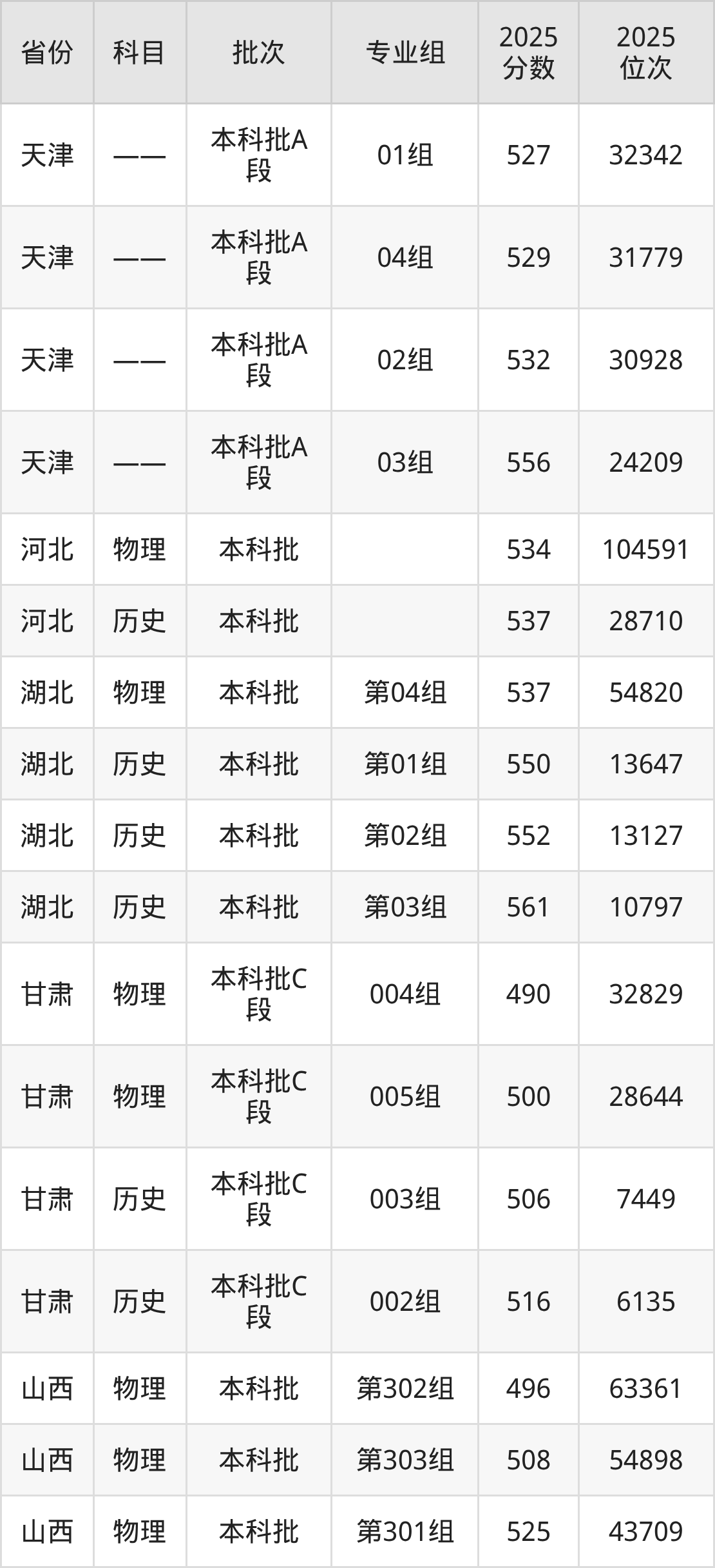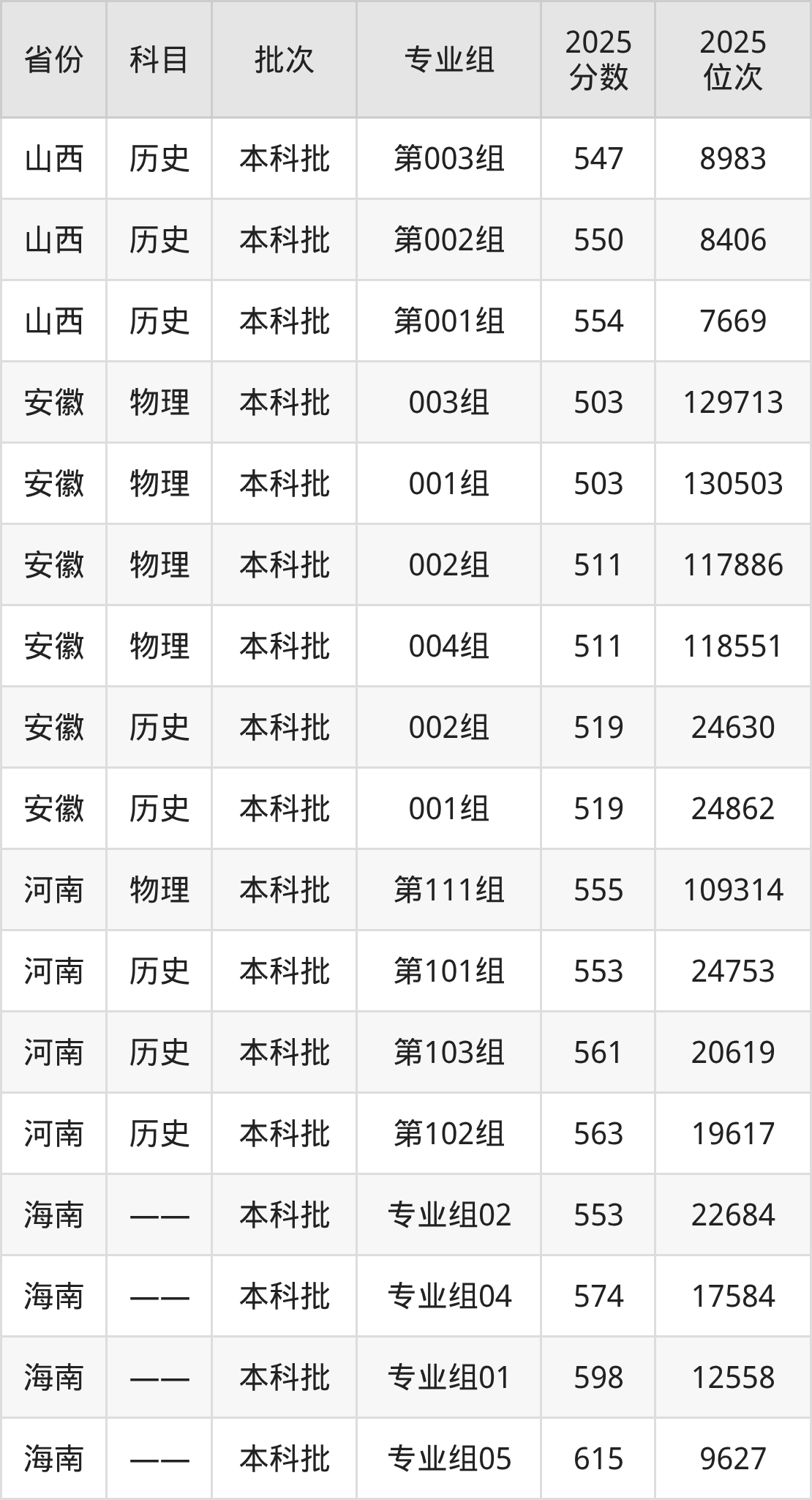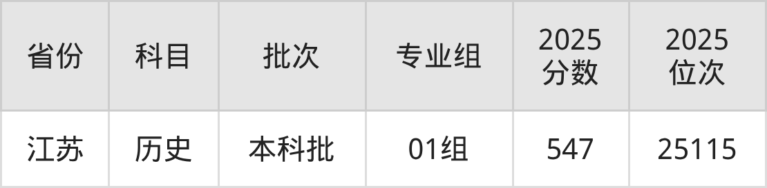 2025年在本科文科进行招生,各专业组分数线详情如下: