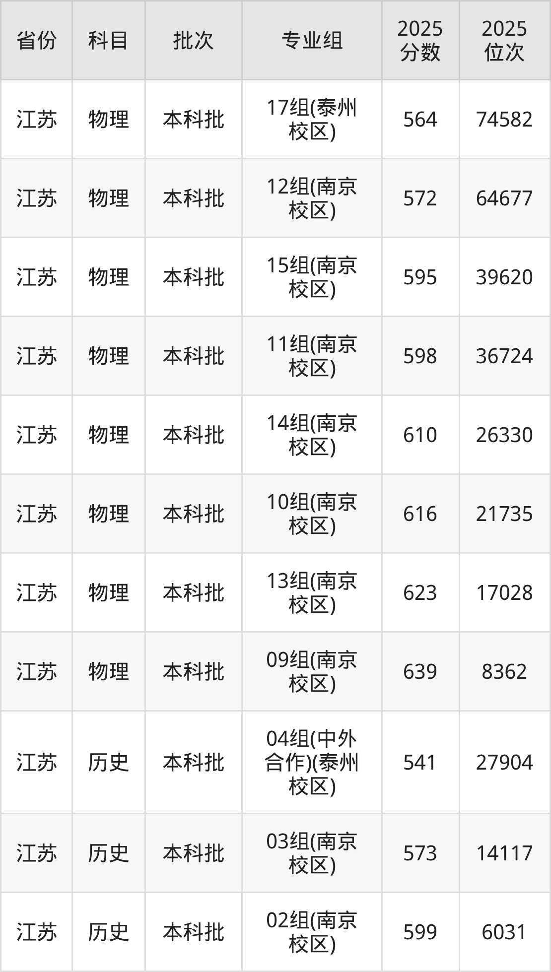 下面是2025年南京中医药大学全国录取分数线一览表,请查阅。