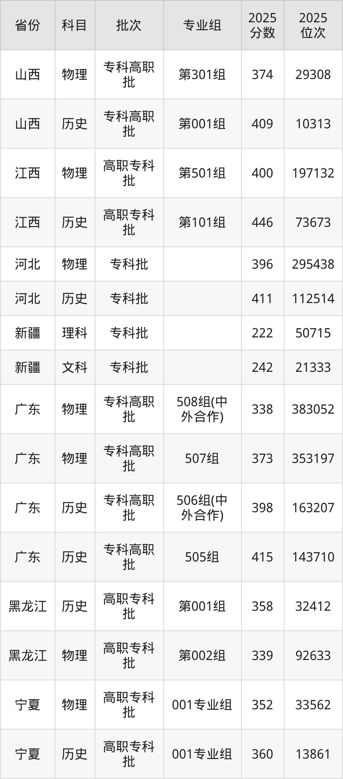 长江工程职业技术学院508组(中外合作):2025年投档录取最低分为338分,录取最低位次为383052名。