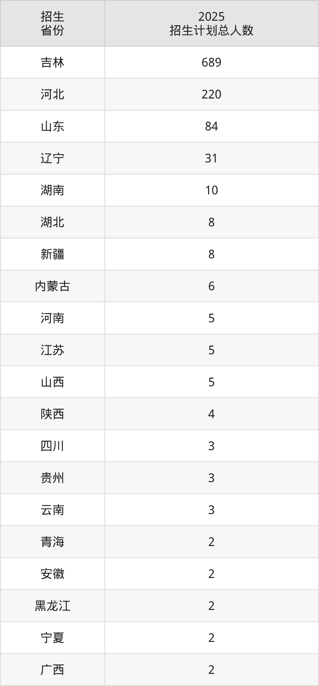 2025年长春师范高等专科学校面向全国22个省市开展专科招生;招生专业共26个,招生人数共1096人。2025年在吉林省招生计划总人数是689人,其中,长春师范高等专科学校在吉林省招生人数最多的是特殊教育。长春师范高等专科学校在各省具体招生人数情况如下表。