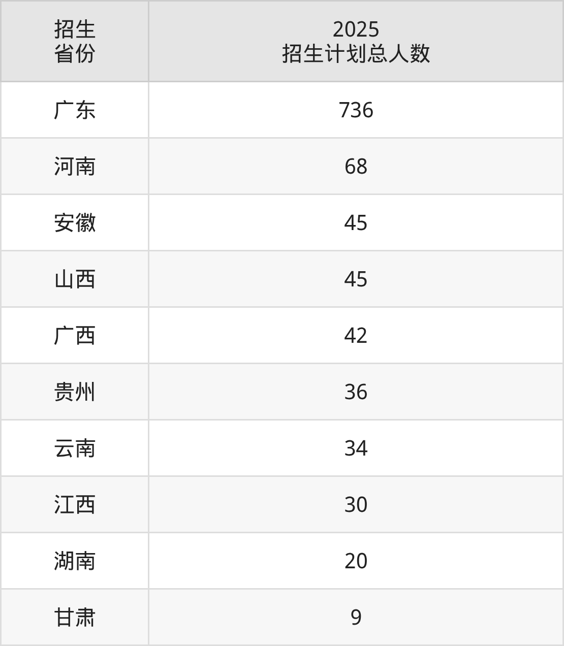 2025年中山火炬职业技术学院面向全国10个省市开展专科招生;招生专业共21个,招生人数共1065人。2025年在广东省招生计划总人数是736人,其中,中山火炬职业技术学院在广东省招生人数最多的是融媒体技术与运营。中山火炬职业技术学院在各省具体招生人数情况如下表。