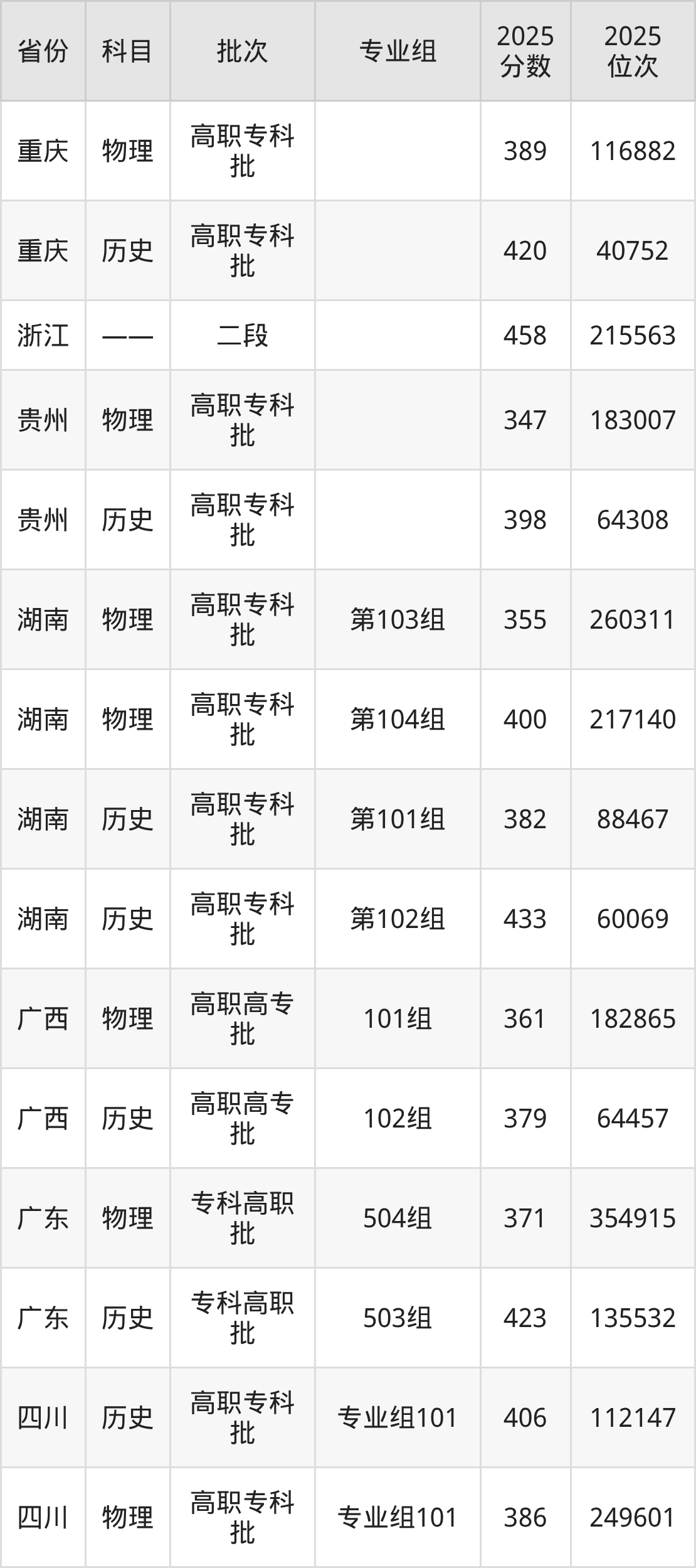 下面是2025年湖南环境生物职业技术学院全国录取分数线一览表,请查阅。