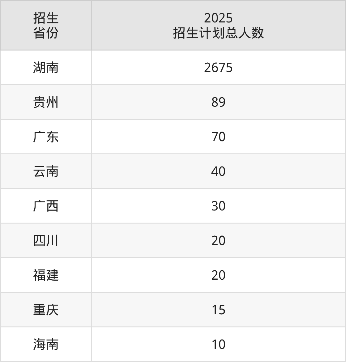 2025年湖南环境生物职业技术学院面向全国9个省市开展专科招生;招生专业共35个,招生人数共2969人。2025年在湖南省招生计划总人数是2675人,其中,湖南环境生物职业技术学院在湖南省招生人数最多的是康复治疗技术。湖南环境生物职业技术学院在各省具体招生人数情况如下表。
