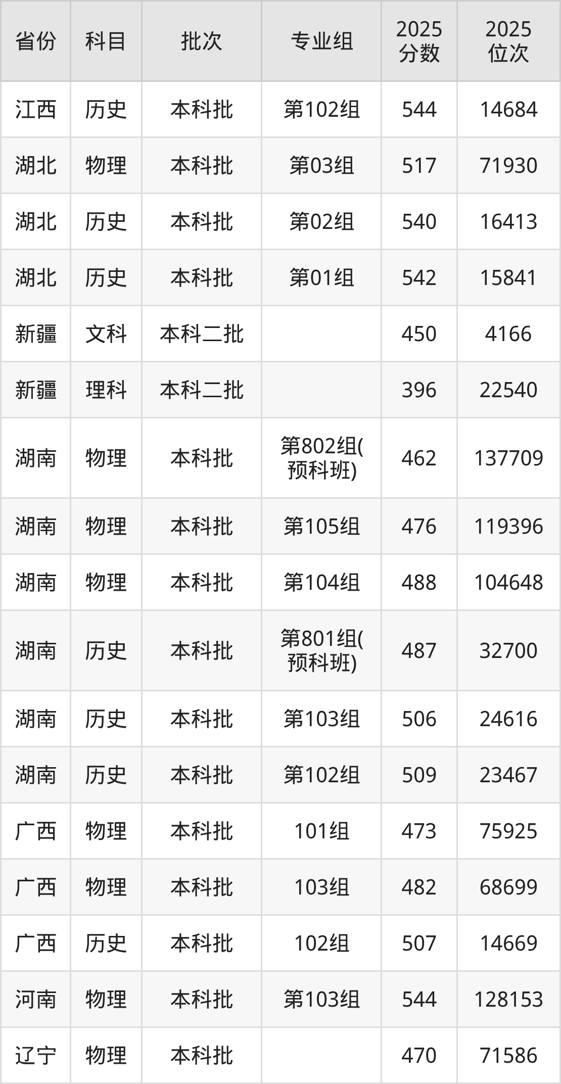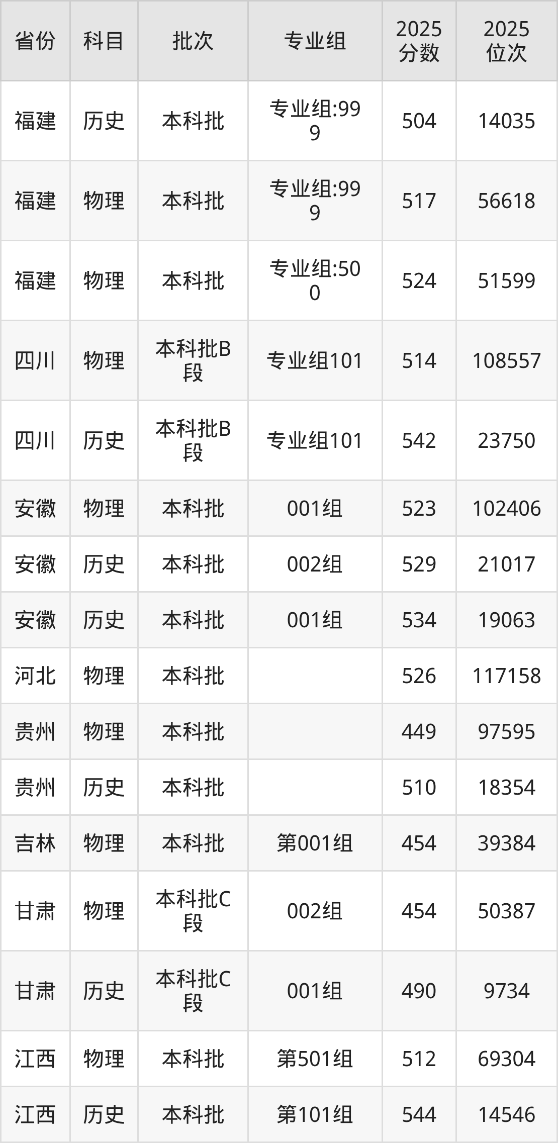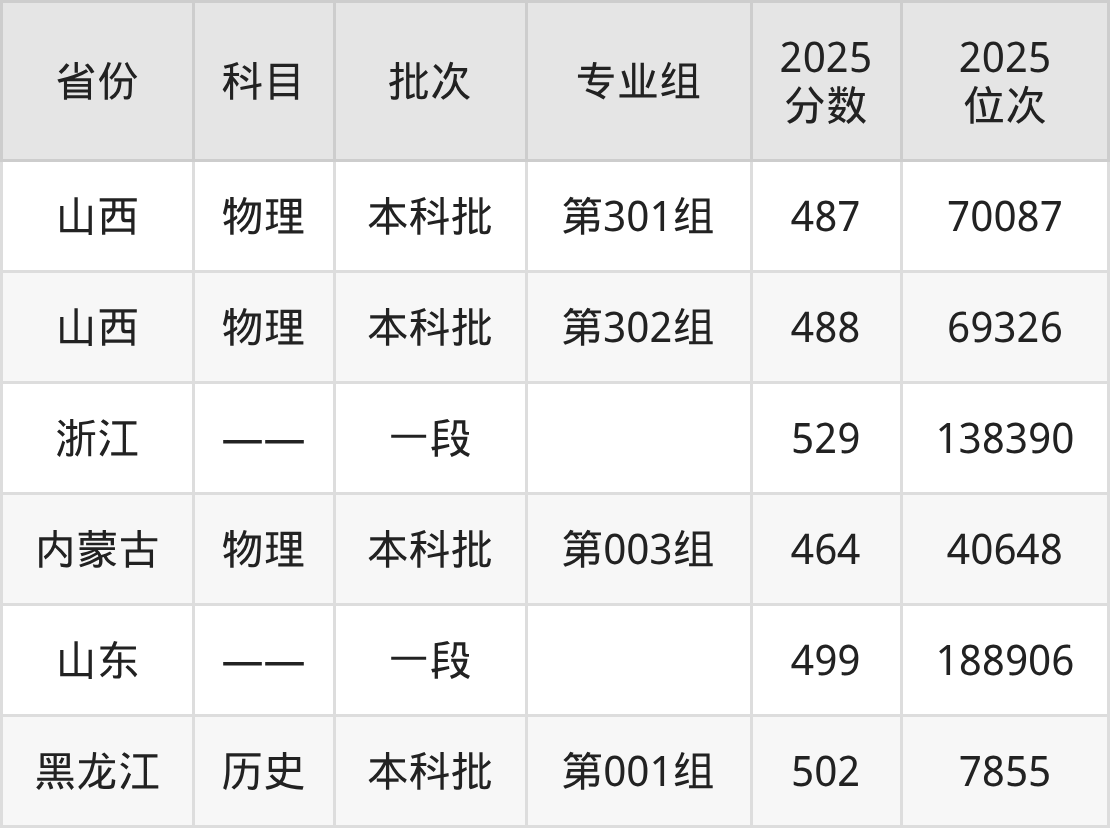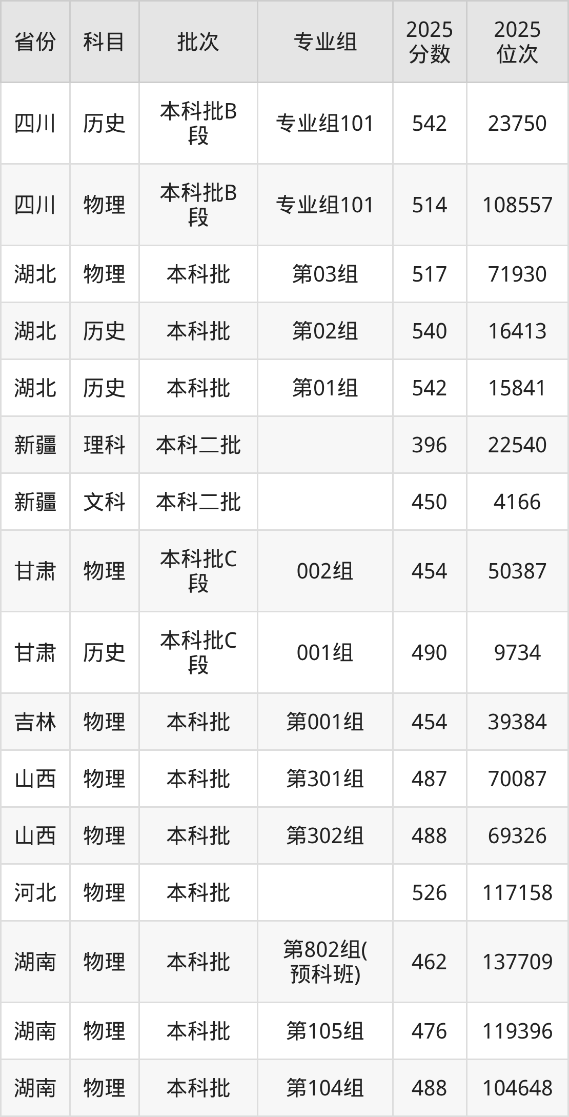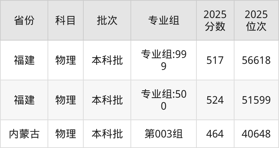 2025年在本科物理类进行招生,各专业组分数线详情如下: