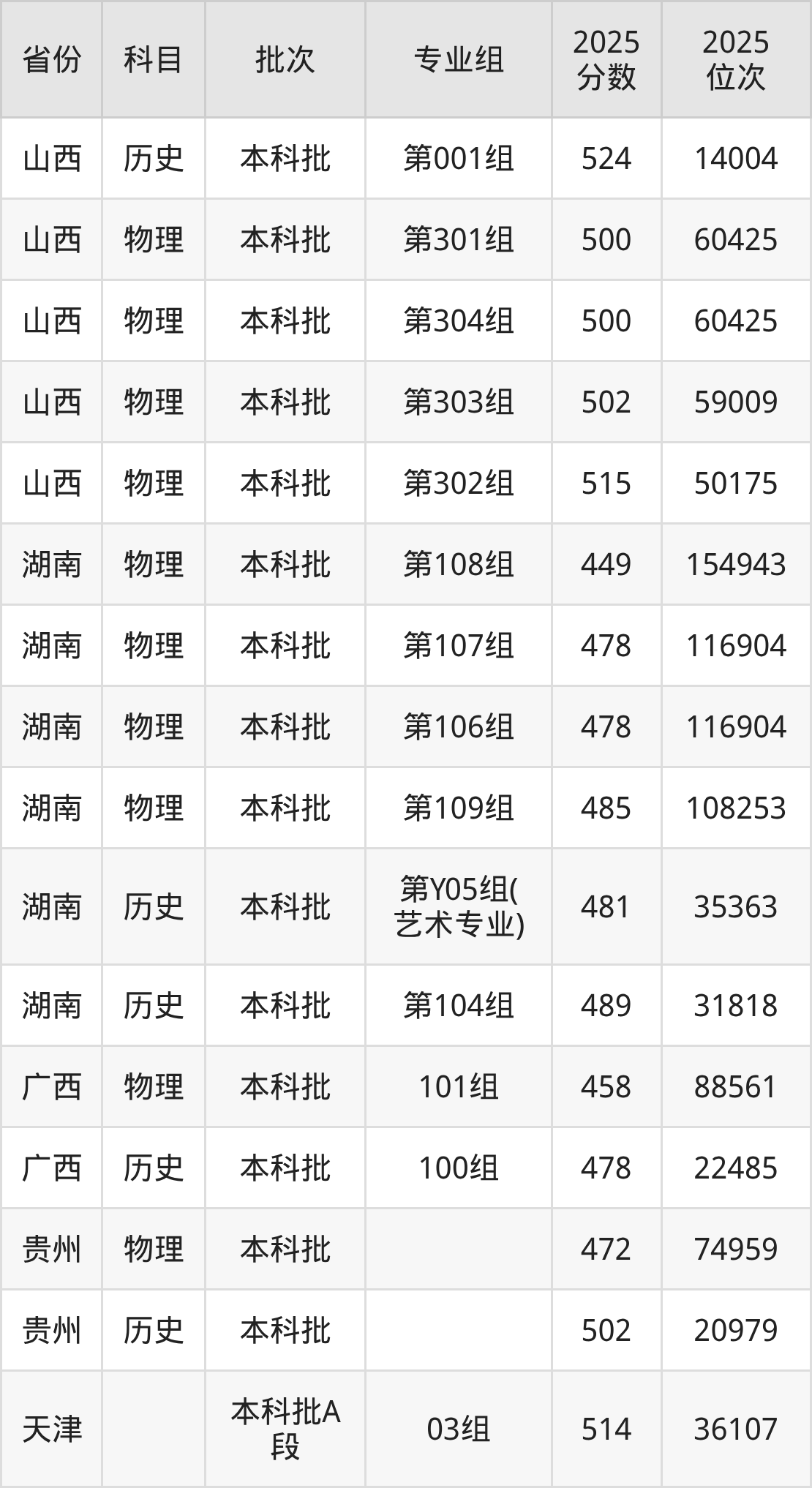 2025年投档录取最低分为472分,录取最低位次为74959名。