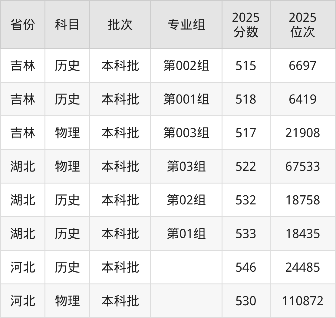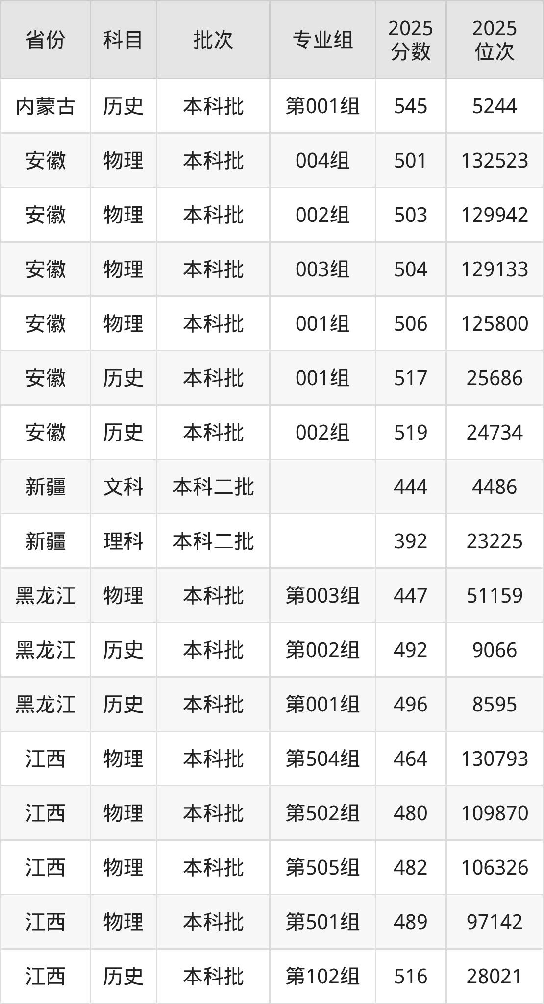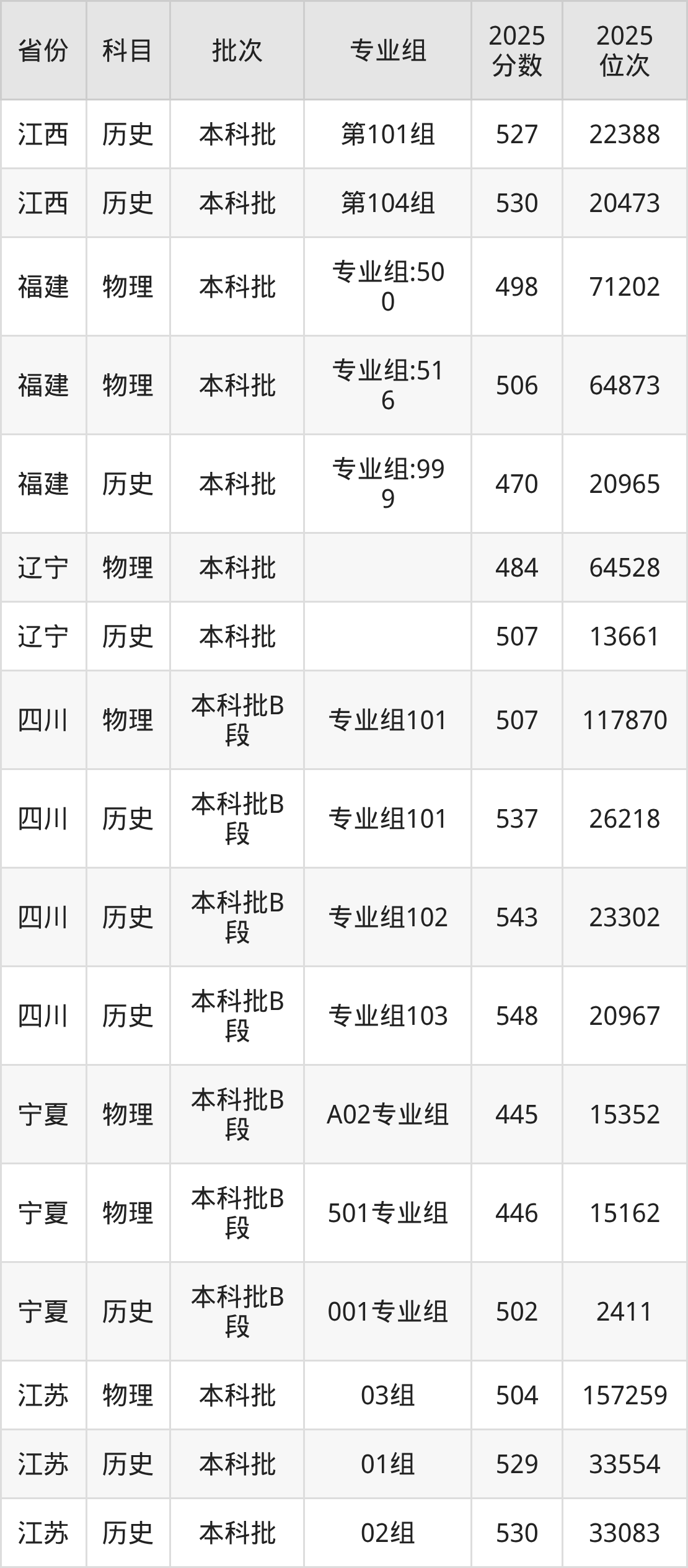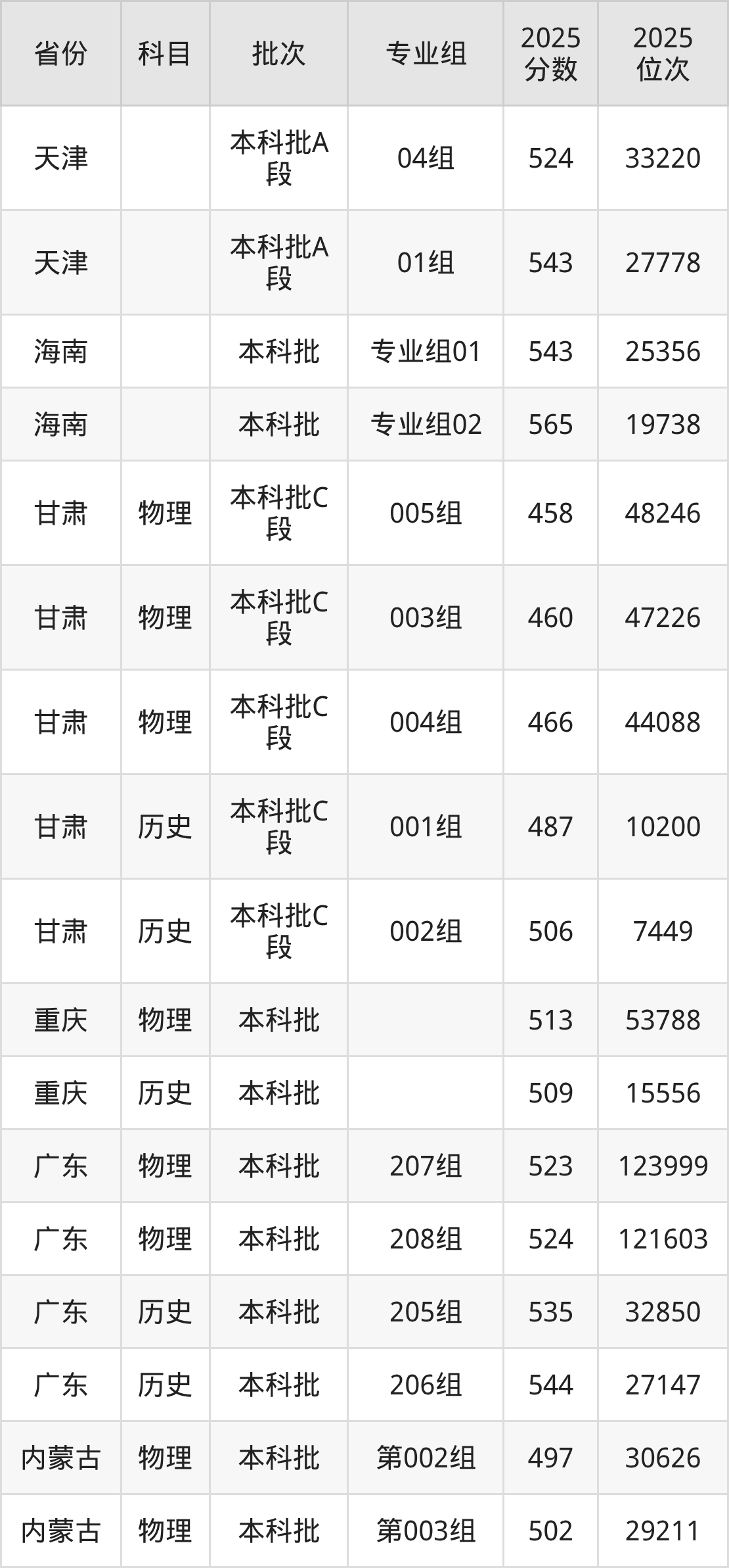 2025年投档录取最低分为509分,录取最低位次为15556名。