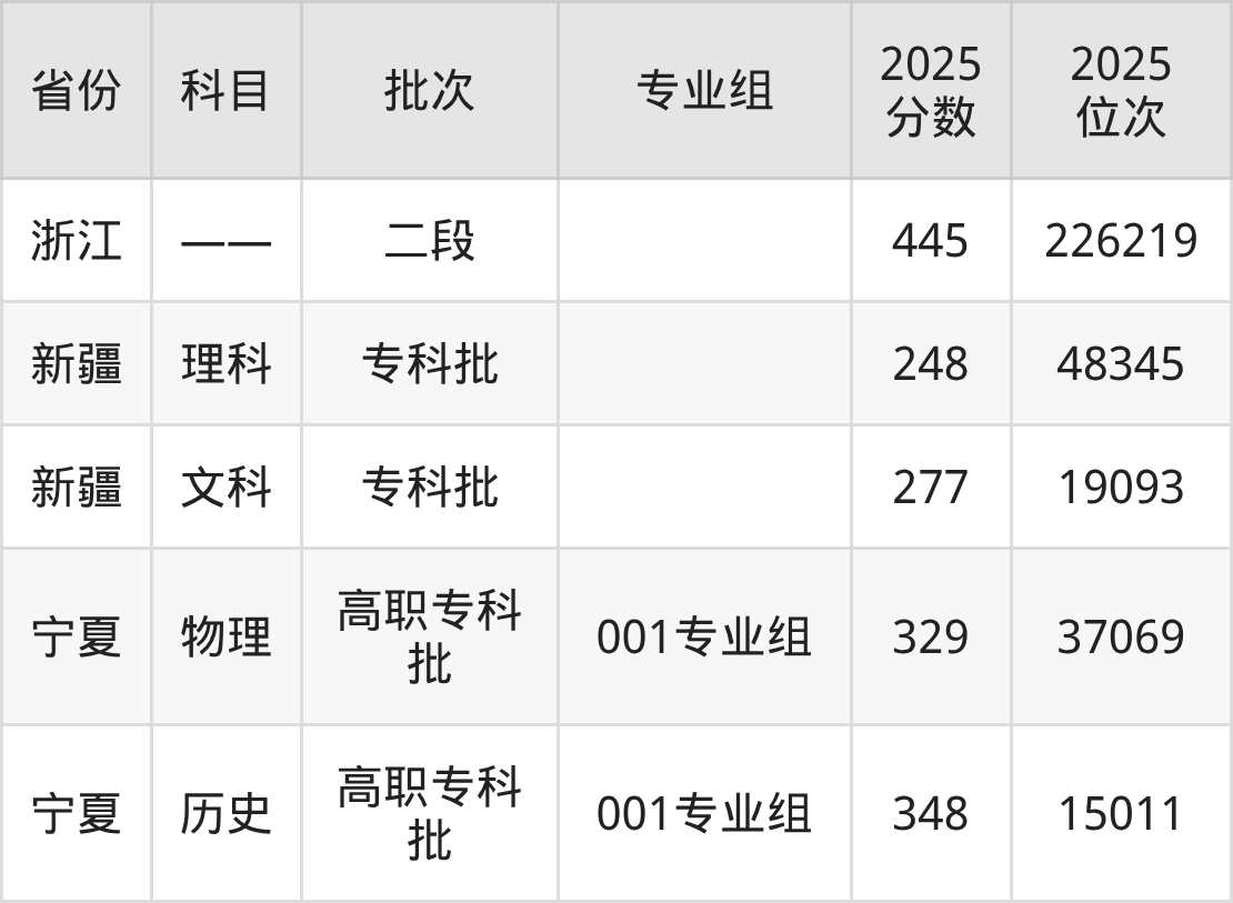 九江职业大学001专业组:2025年投档录取最低分为348分,录取最低位次为15011名。