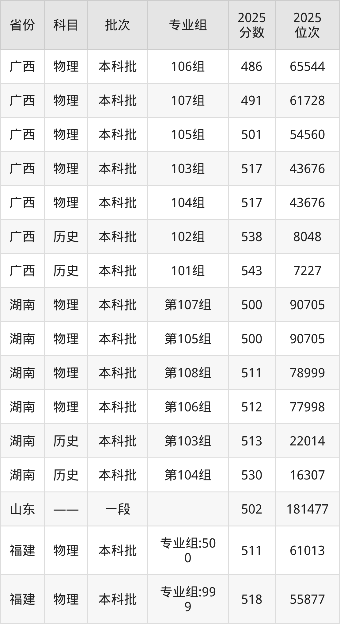 2025年投档录取最低分为538分,录取最低位次为98476名。