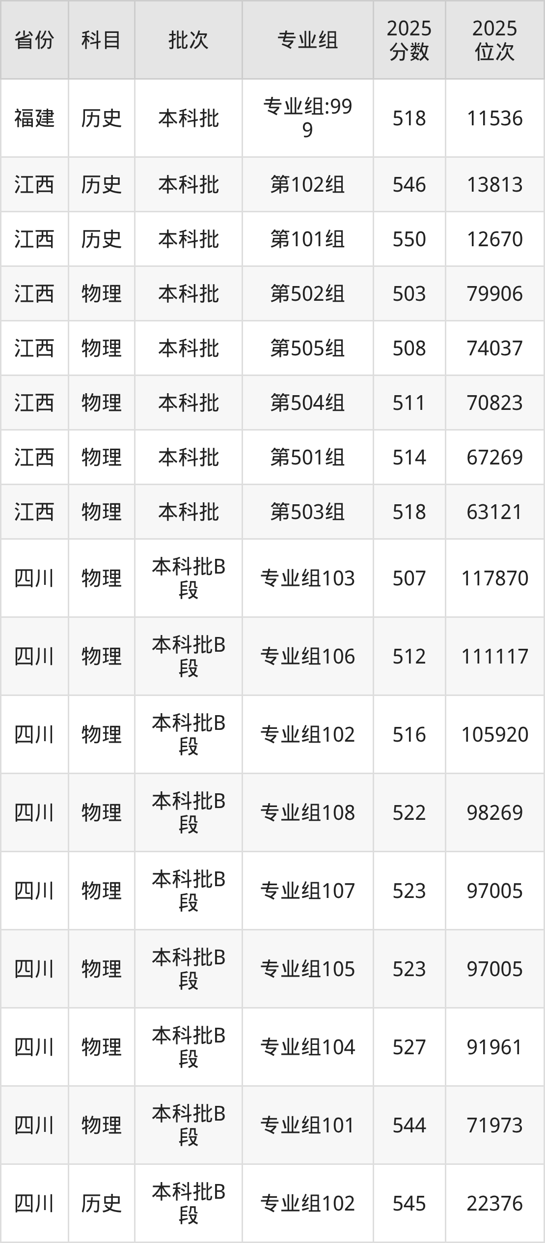 普通类本科物理类最低526分,本科历史类最低547分