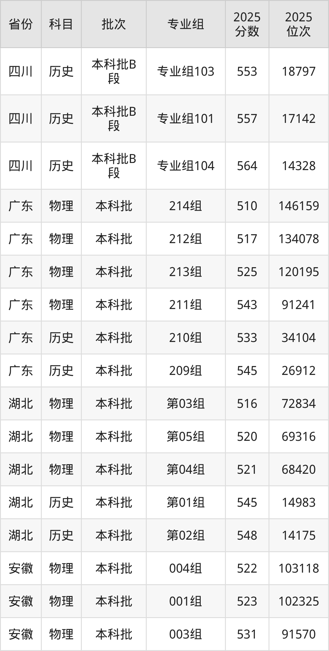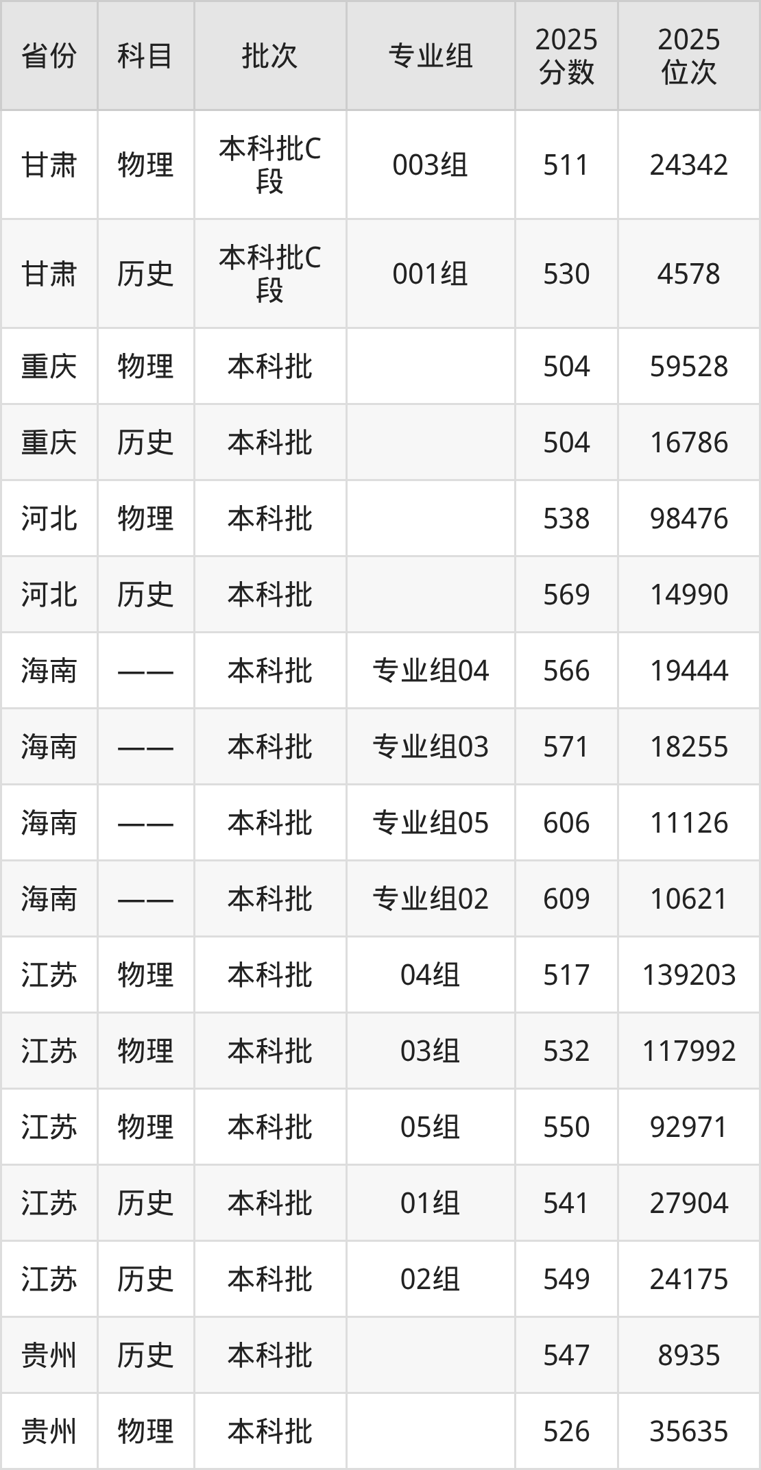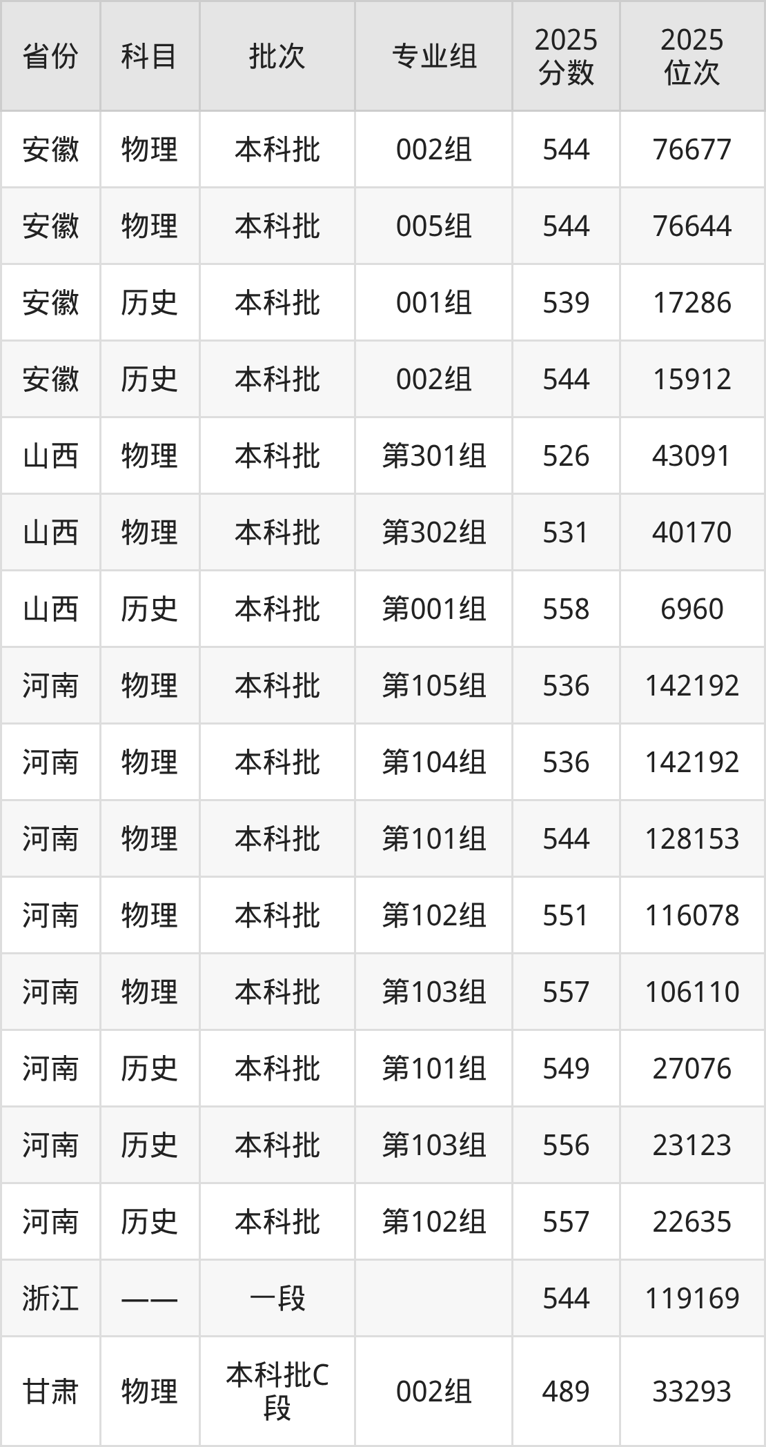 普通类本科物理类最低538分,本科历史类最低569分