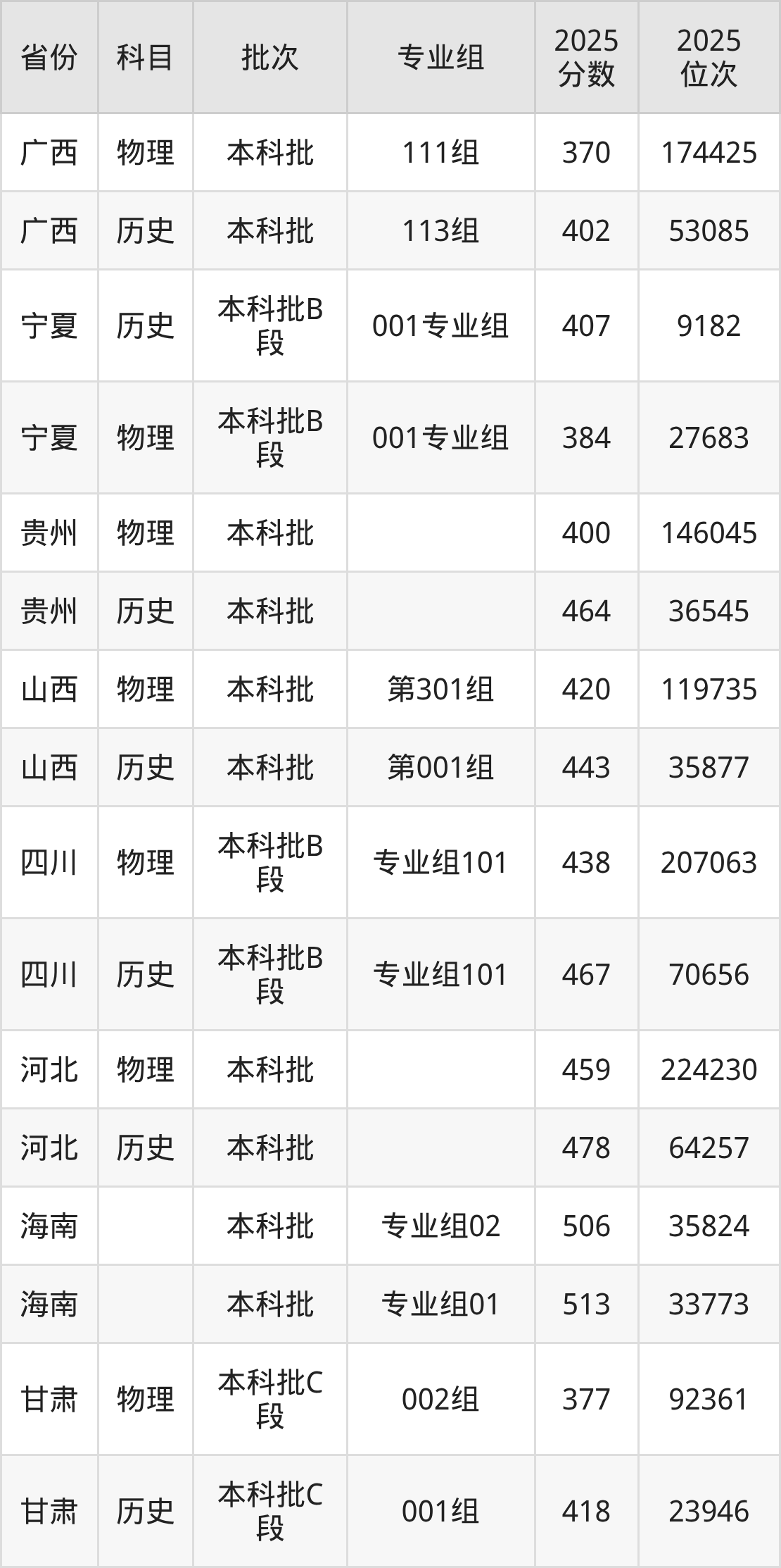 广西城市职业大学第301组:2025年投档录取最低分为420分,录取最低位次为119735名。