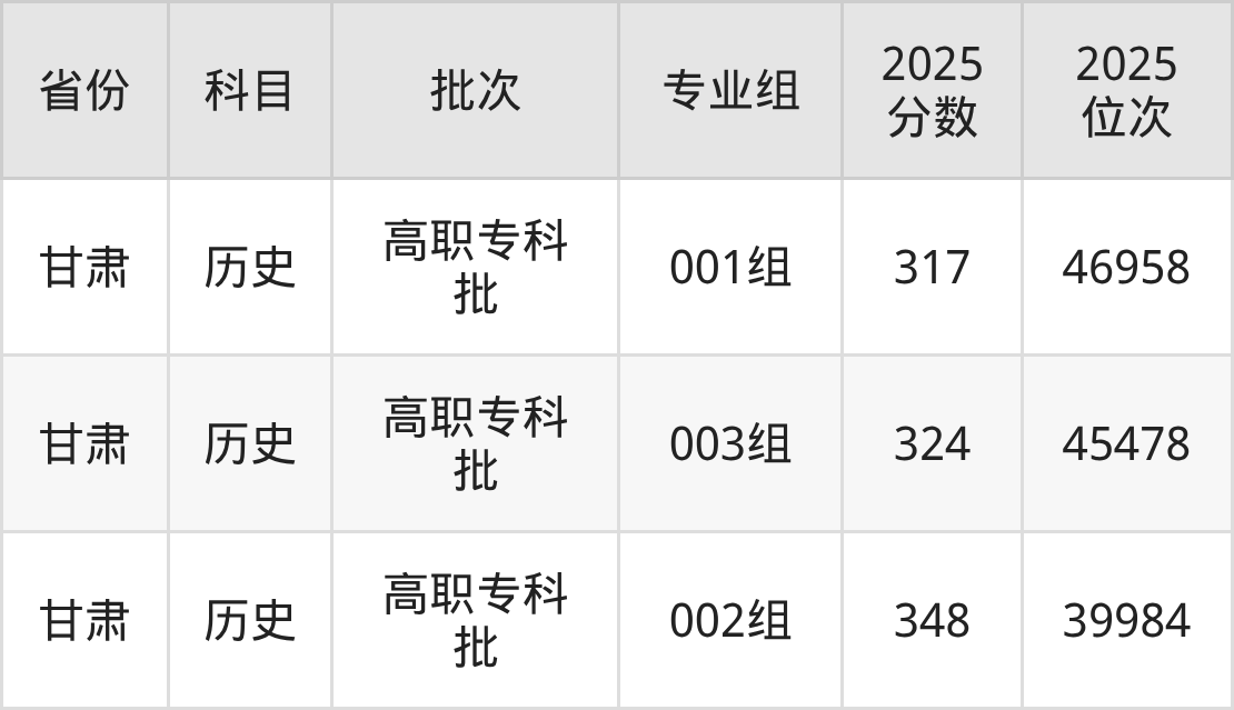 济南职业学院001专业组:2025年投档录取最低分为317分,录取最低位次为46958名。