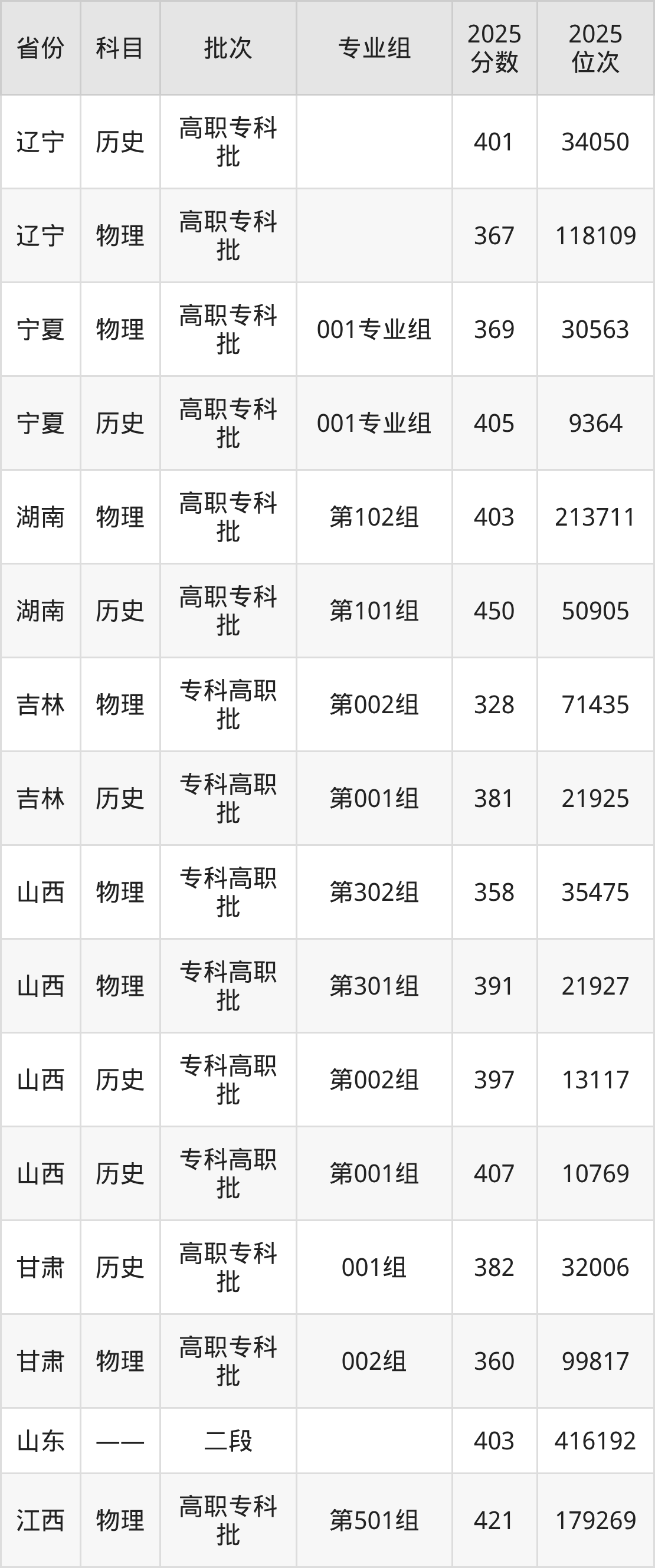 2025年投档录取最低分为401分,录取最低位次为34050名。