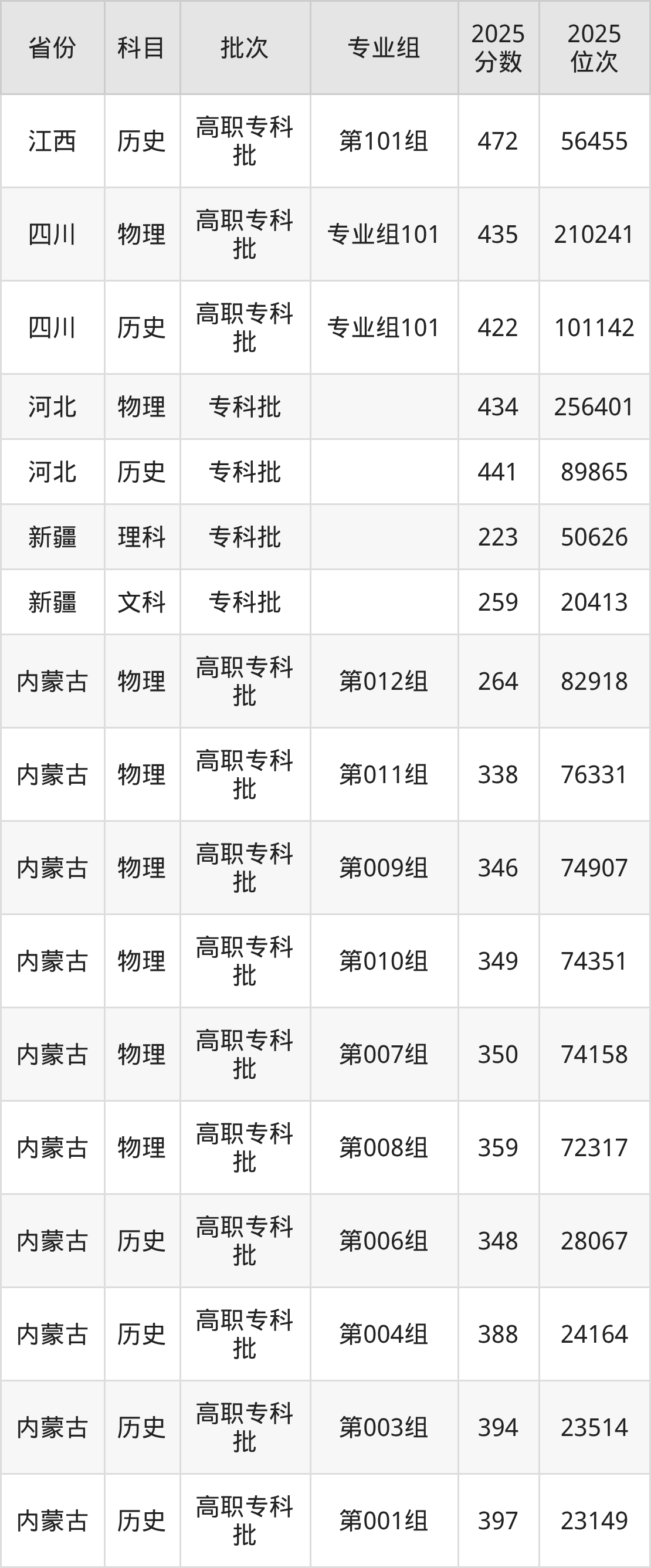 下面是2025年天津渤海职业技术学院全国录取分数线一览表,请查阅。