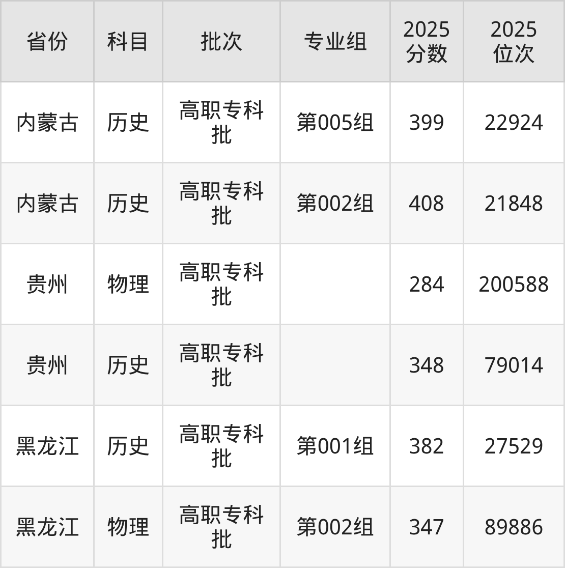 天津渤海职业技术学院第005组:2025年投档录取最低分为399分,录取最低位次为22924名。