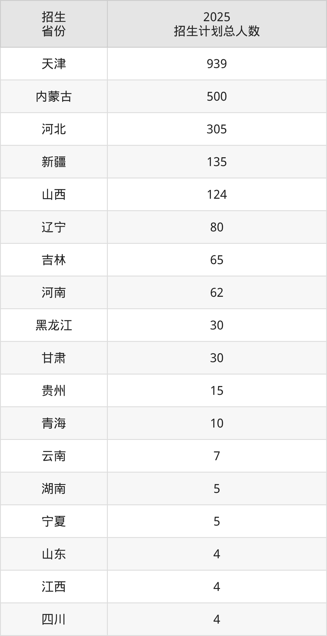 2025年天津渤海职业技术学院面向全国18个省市开展专科招生;招生专业共41个,招生人数共2324人。2025年在天津市招生计划总人数是939人,其中,天津渤海职业技术学院在天津市招生人数最多的是智能建造技术。天津渤海职业技术学院在各省具体招生人数情况如下表。