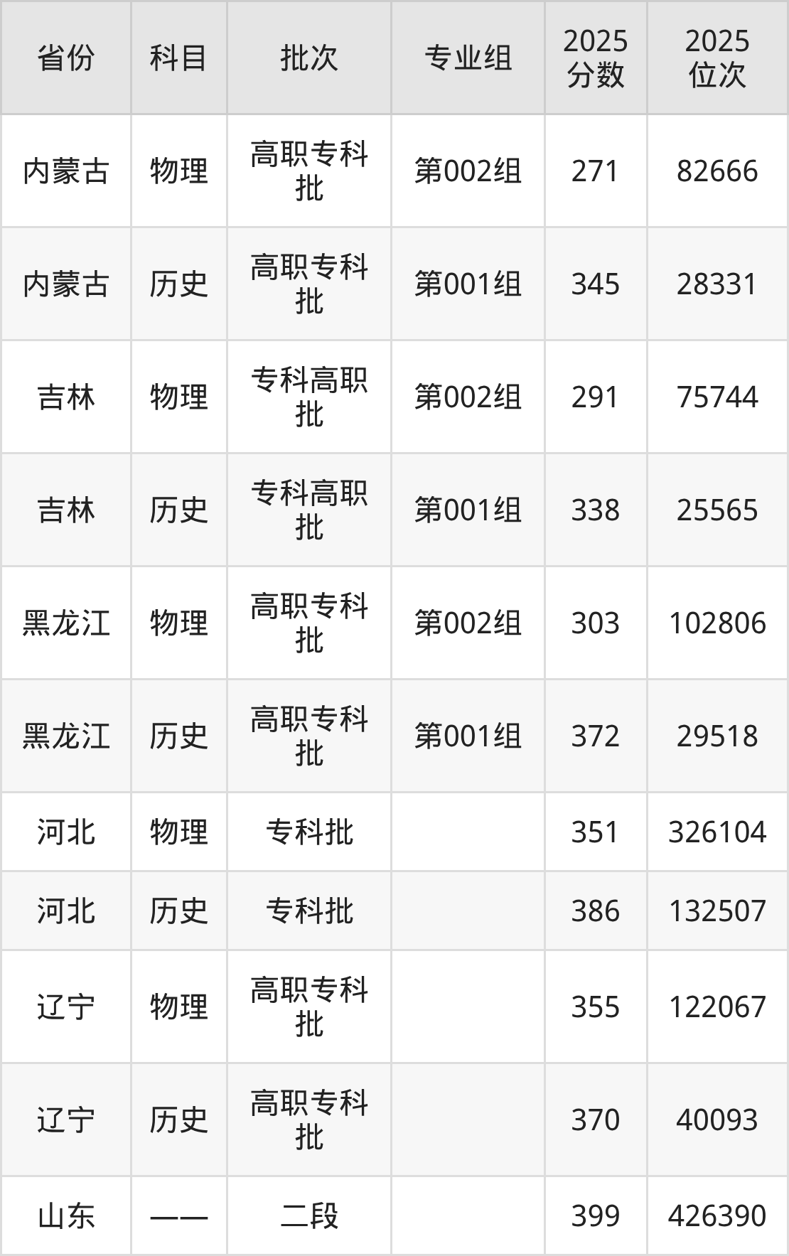 下面是2025年吉林工程职业学院全国录取分数线一览表,请查阅。