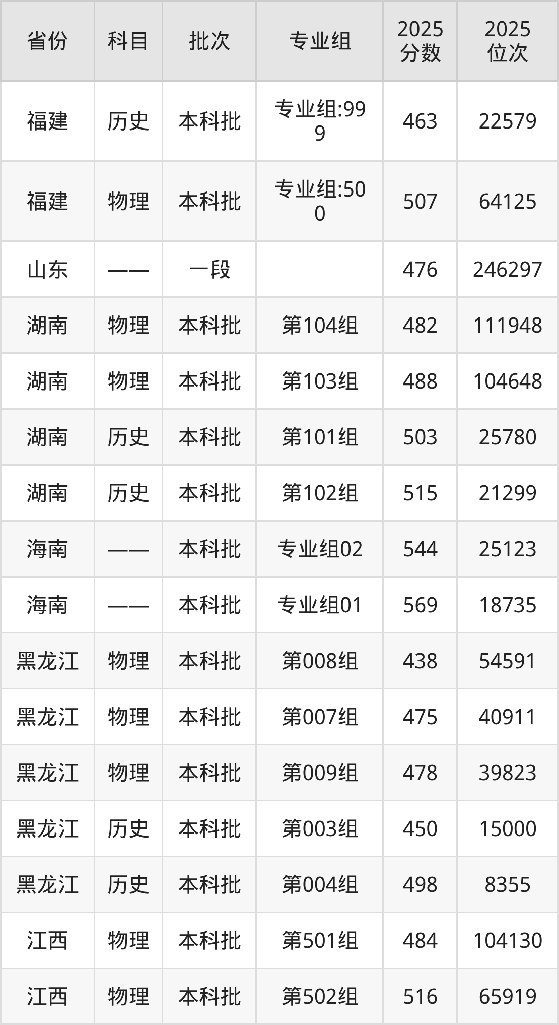 2025年韩山师范学院全国录取分数线是438分到569分,录取最低在黑龙江物理类(第008组)、录取最高在海南(专业组01)。各省各专业组最低分具有差异,详情如下: