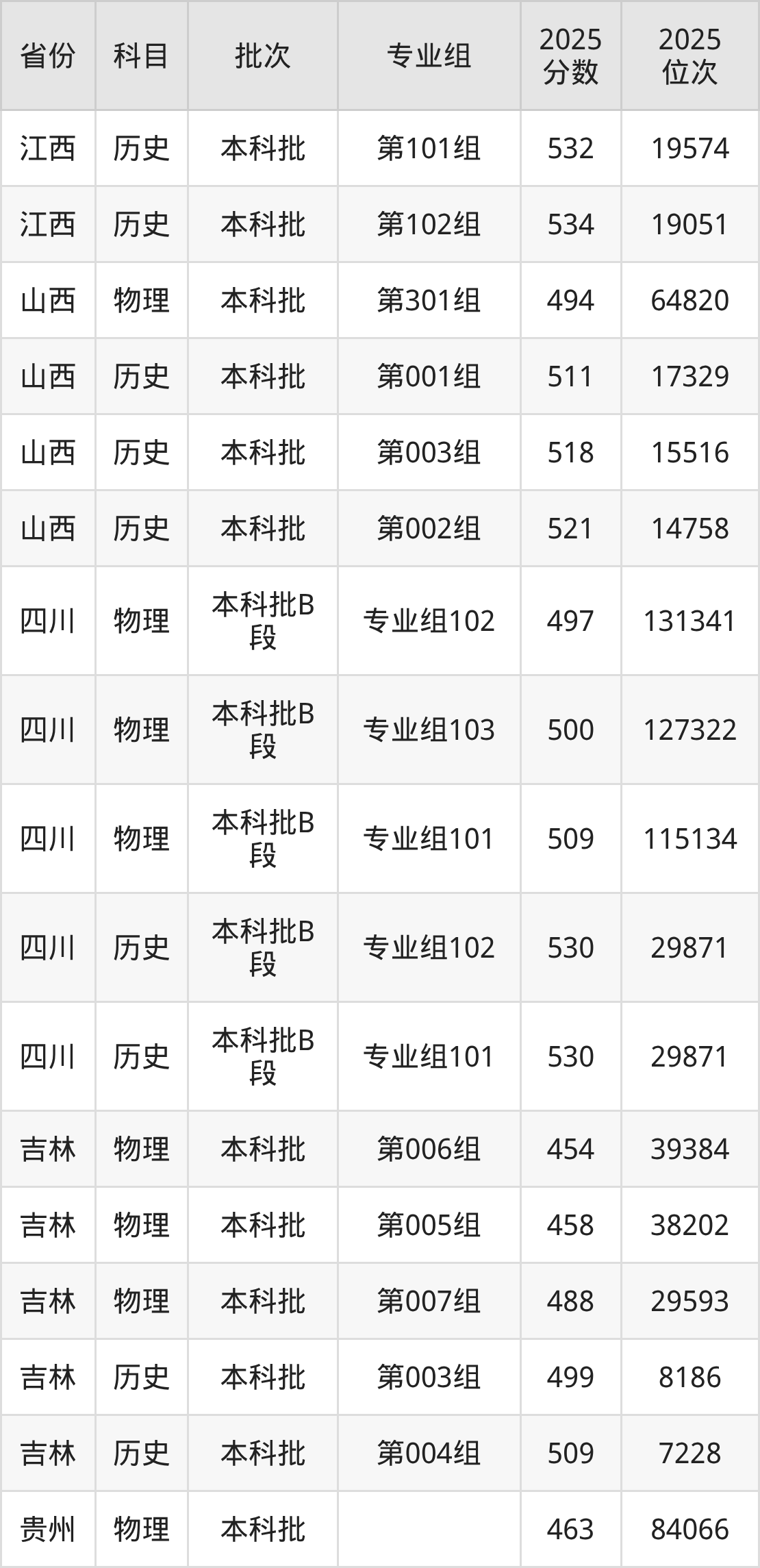 普通类本科物理类最低463分,本科历史类最低514分