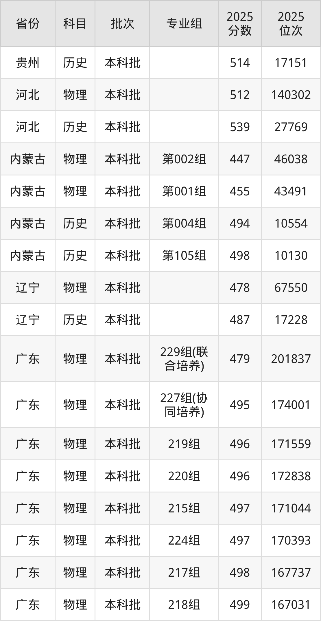 普通类本科物理类最低512分,本科历史类最低539分