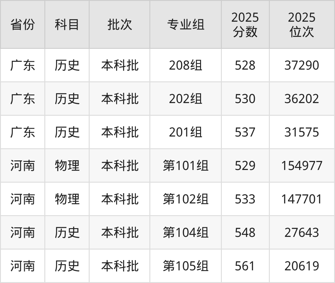 2025年投档录取最低分为539分,录取最低位次为27769名。
