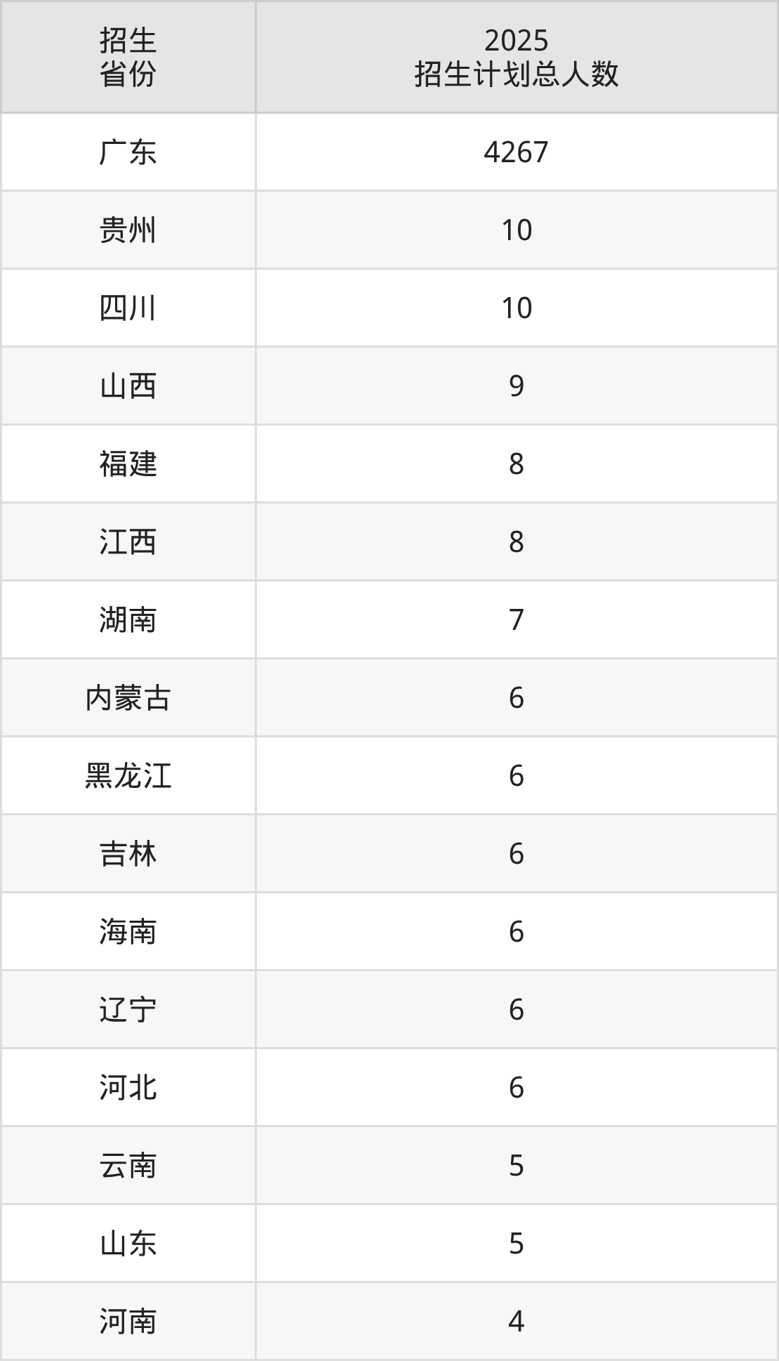 2025年韩山师范学院面向全国16个省市开展本科招生;招生专业共45个,招生人数共4369人。2025年在广东省招生计划总人数是4267人,其中,韩山师范学院在广东省招生人数最多的是材料科学与工程。韩山师范学院在各省具体招生人数情况如下表。