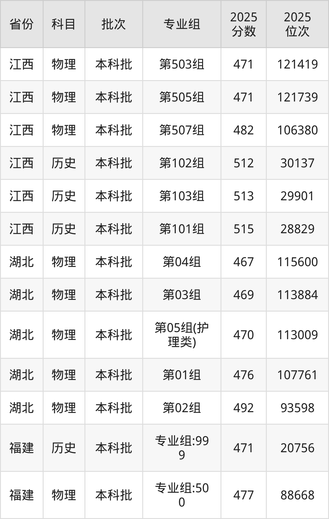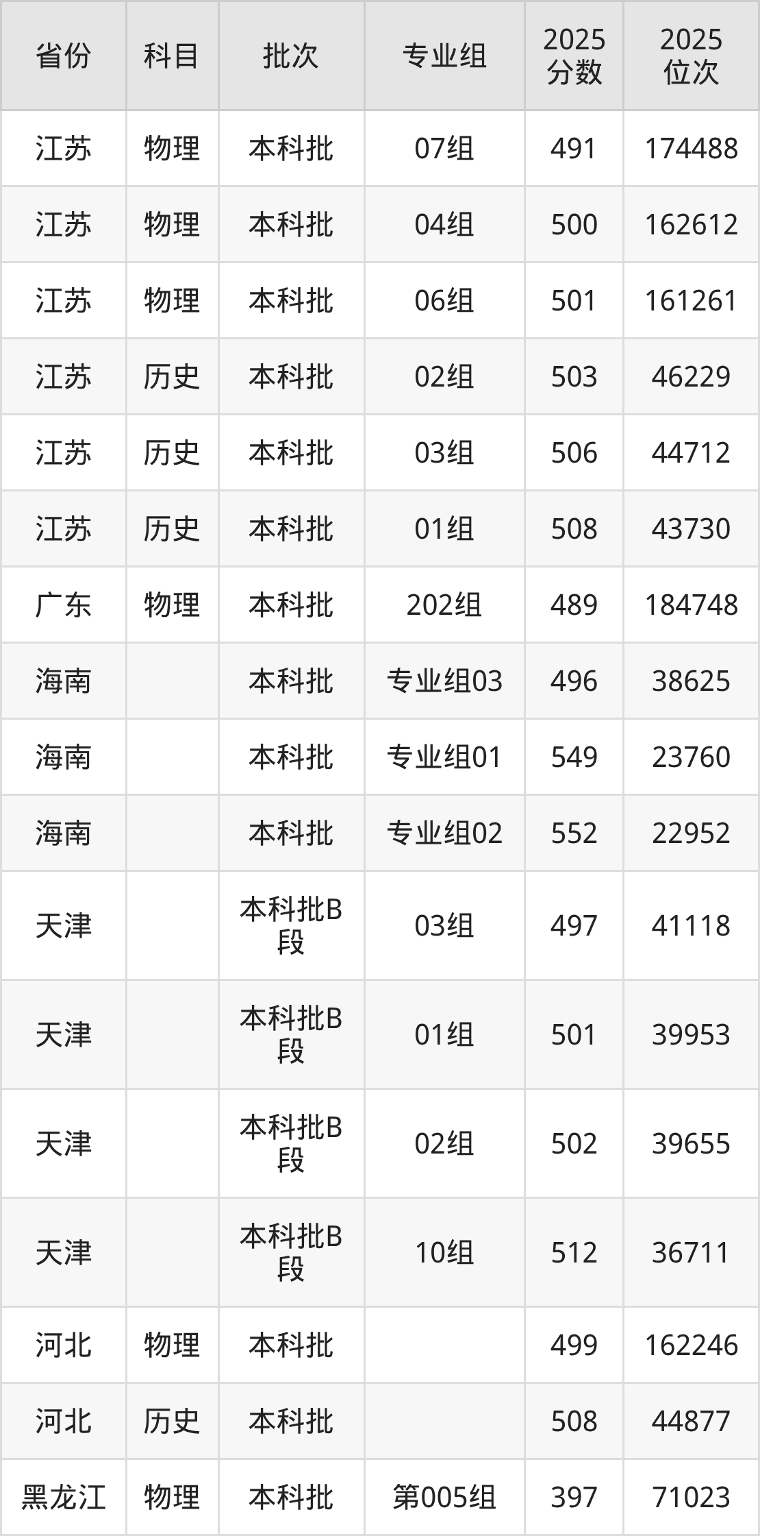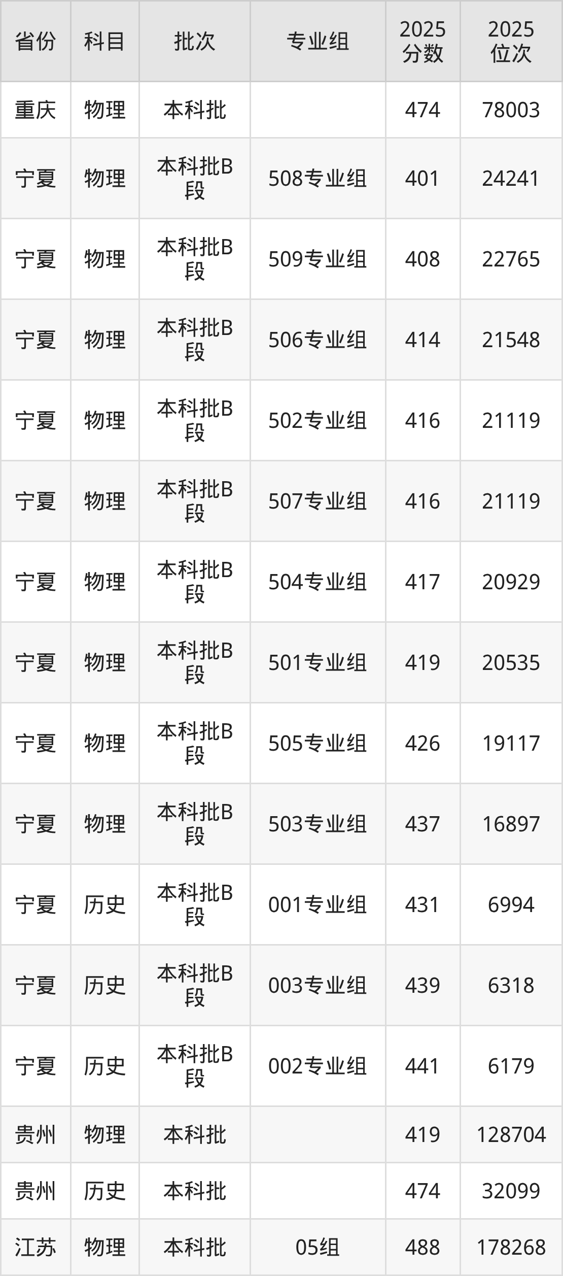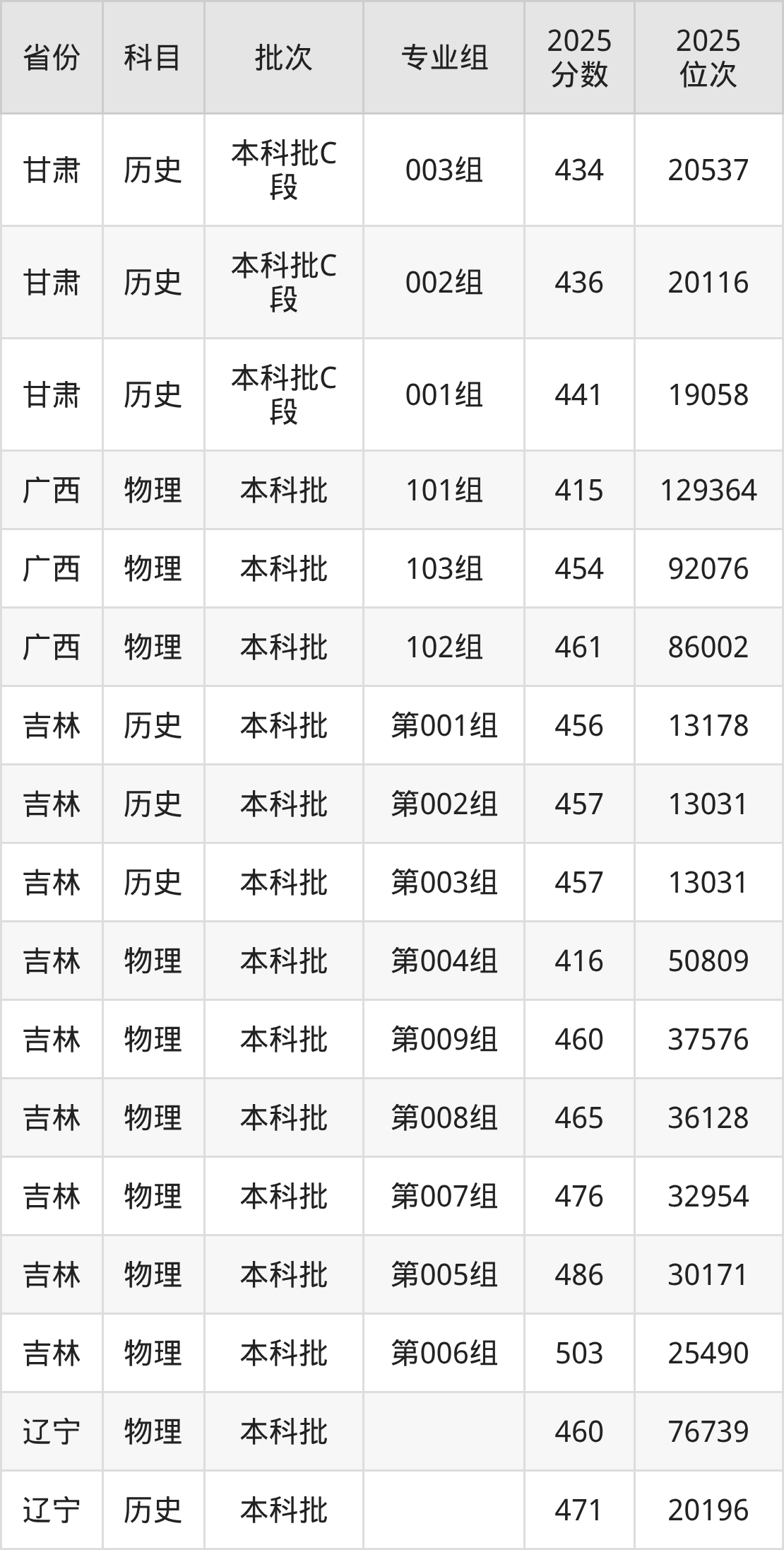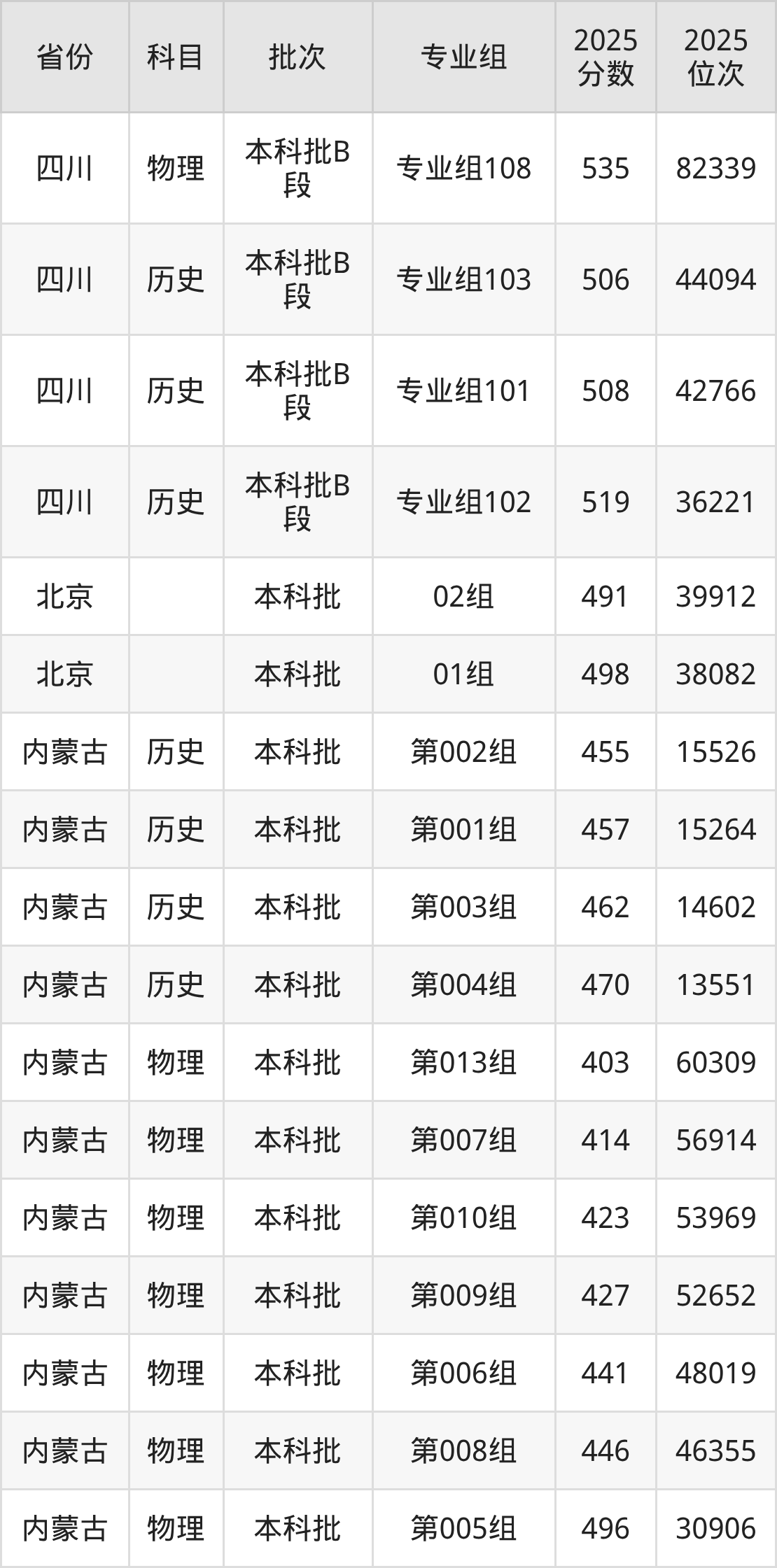 2025年在本科物理类进行招生,各专业组分数线详情如下: