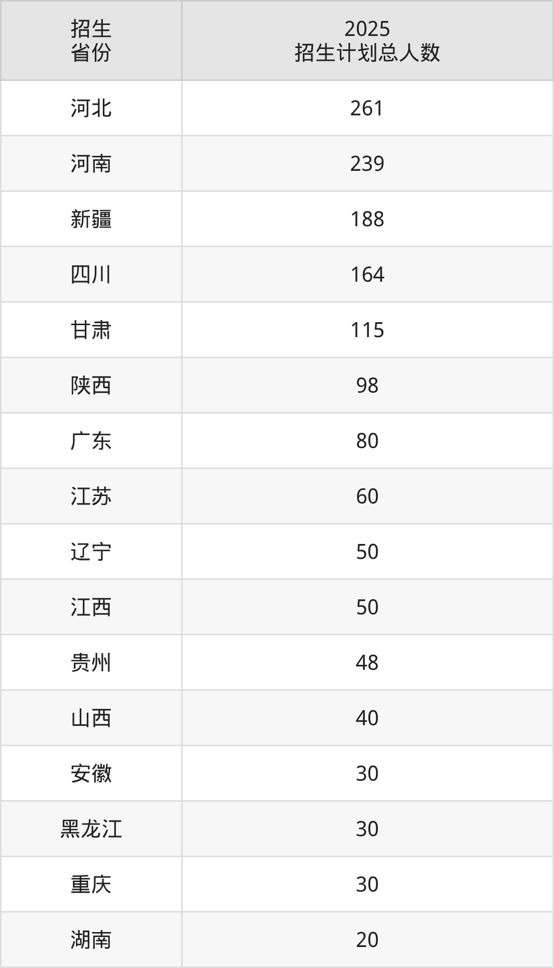2025年喀什理工职业技术学院面向全国19个省市开展专科招生;招生专业共18个,招生人数共1543人。2025年在新疆维吾尔自治区招生计划总人数是188人,其中,喀什理工职业技术学院在新疆维吾尔自治区招生人数最多的是护理。喀什理工职业技术学院在各省具体招生人数情况如下表。