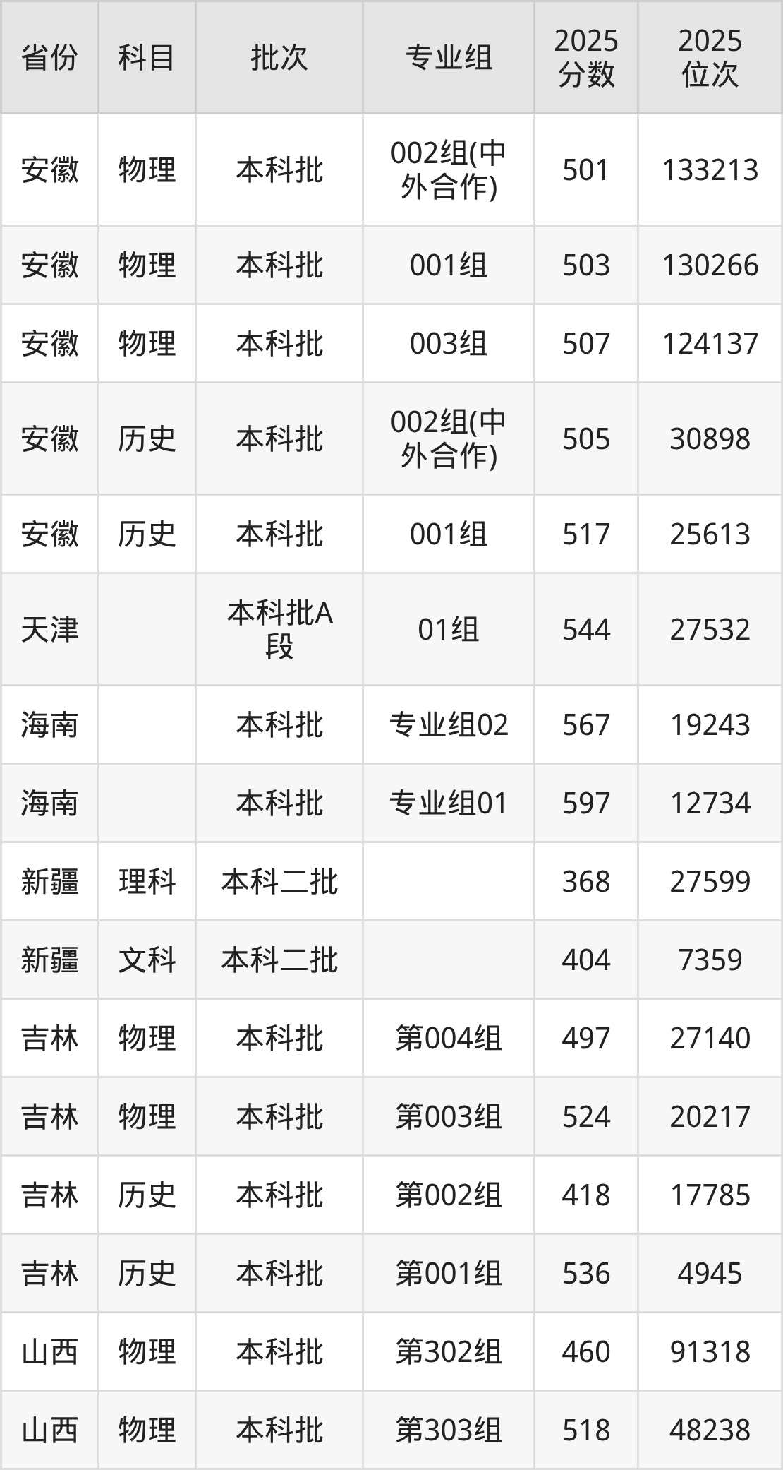 2025年内蒙古财经大学全国录取分数线是368分到597分,录取最低在新疆理科、录取最高在海南(专业组01)。各省各专业组最低分具有差异,详情如下: