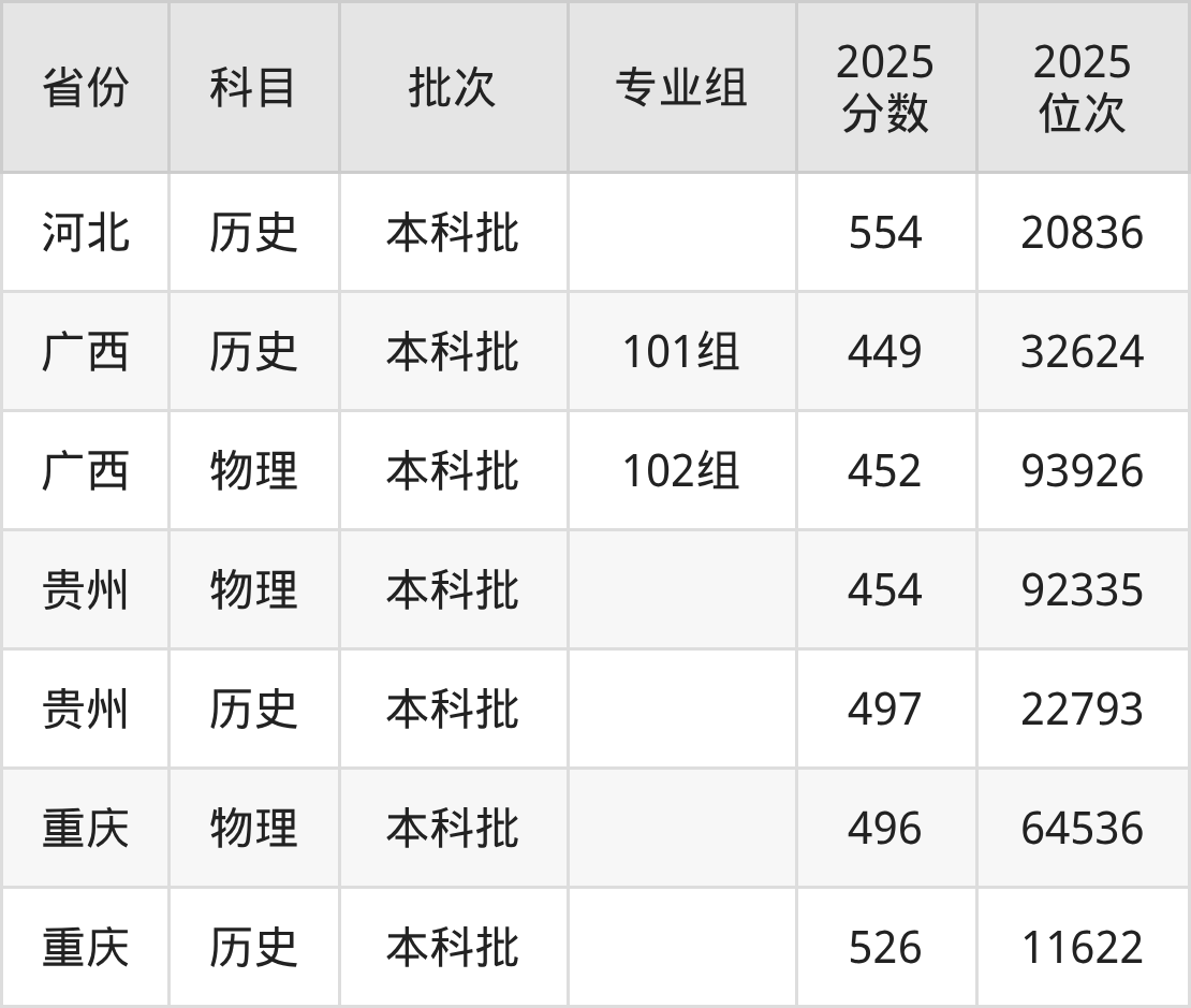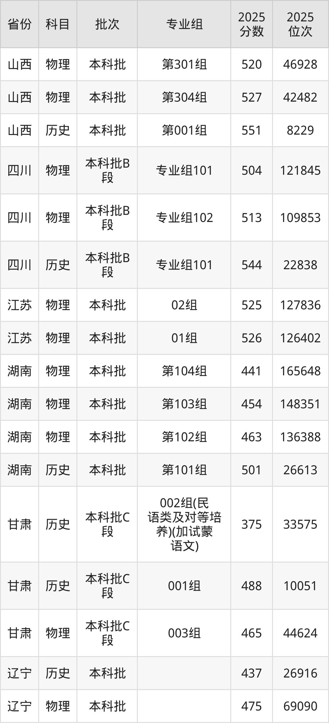 2025年投档录取最低分为475分,录取最低位次为69090名。