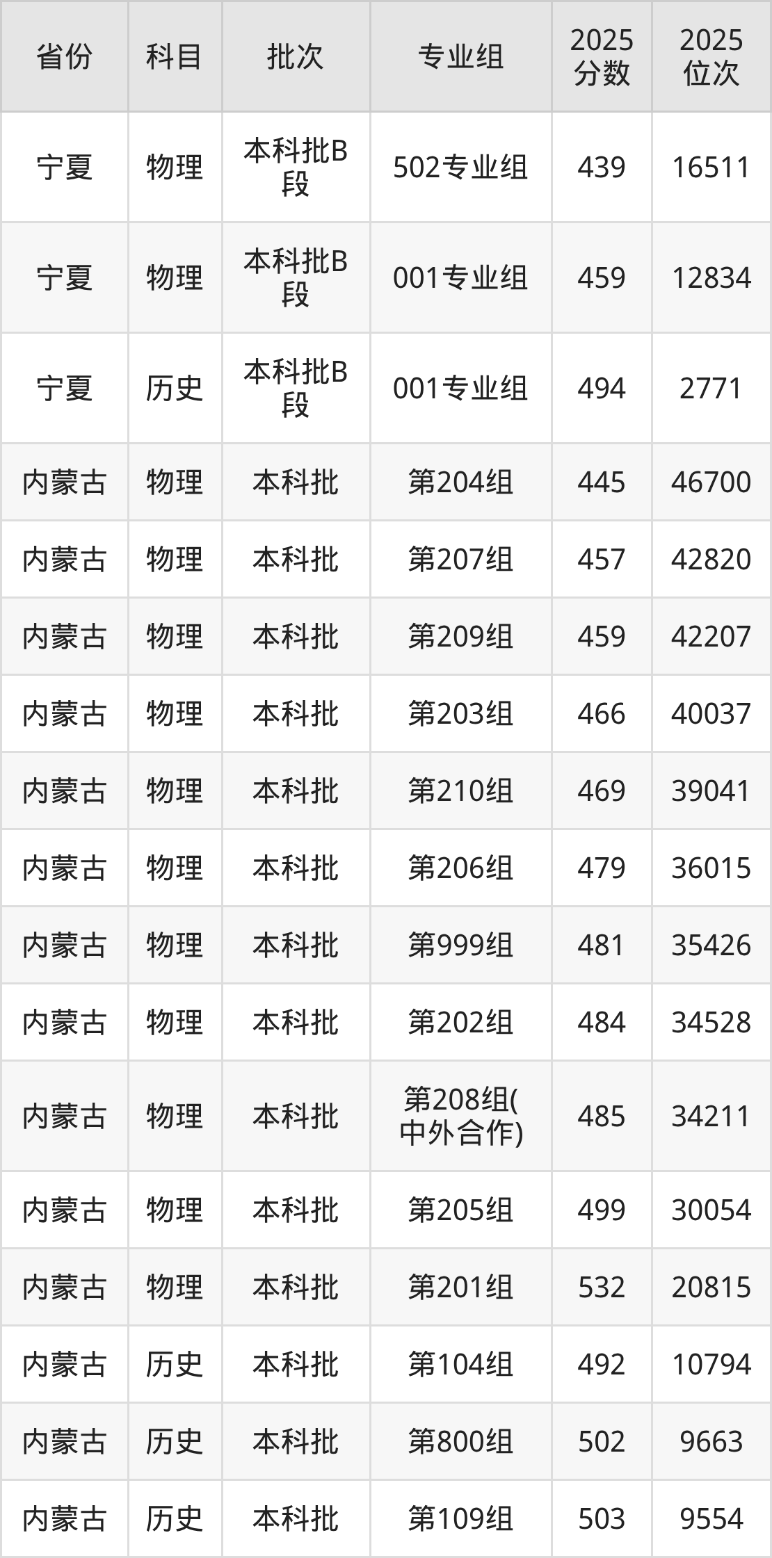 内蒙古财经大学第108组(中外合作):2025年投档录取最低分为515分,录取最低位次为8156名。