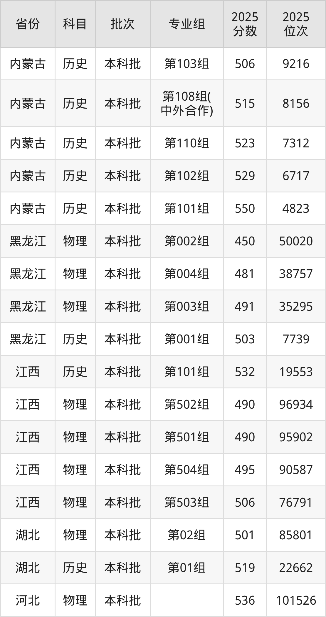 下面是2025年内蒙古财经大学全国录取分数线一览表,请查阅。