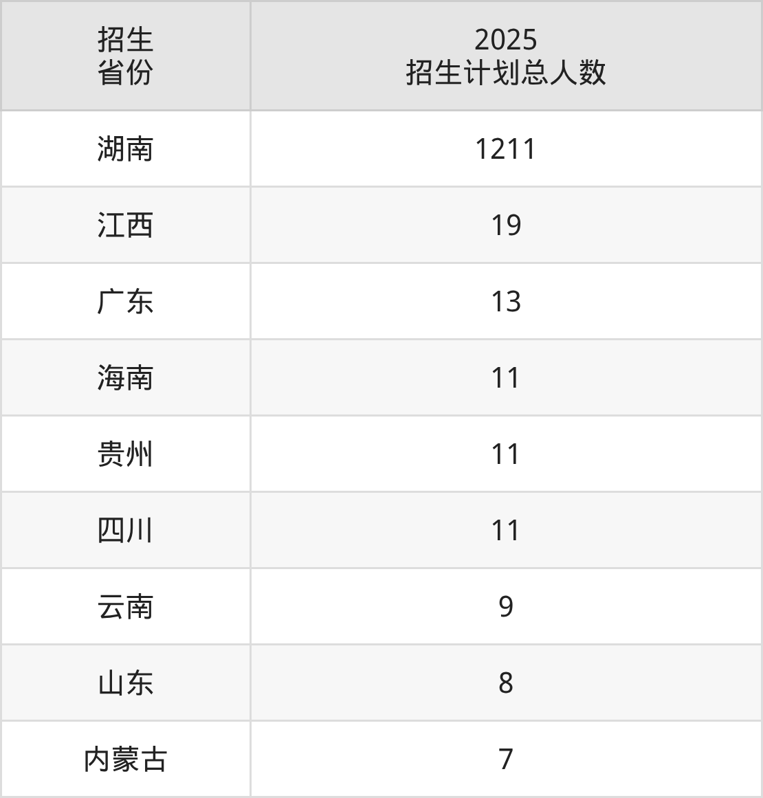 2025年湖南理工职业技术学院面向全国9个省市开展专科招生;招生专业共13个,招生人数共1300人。2025年在湖南省招生计划总人数是1211人,其中,湖南理工职业技术学院在湖南省招生人数最多的是机械设计与制造。湖南理工职业技术学院在各省具体招生人数情况如下表。