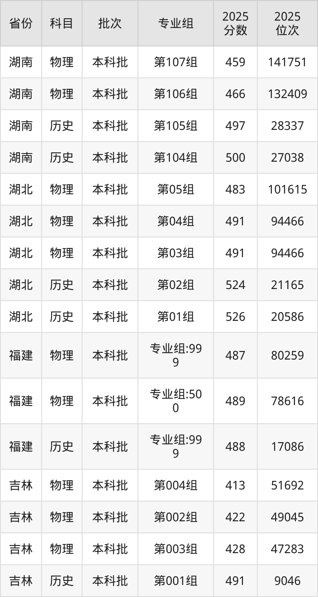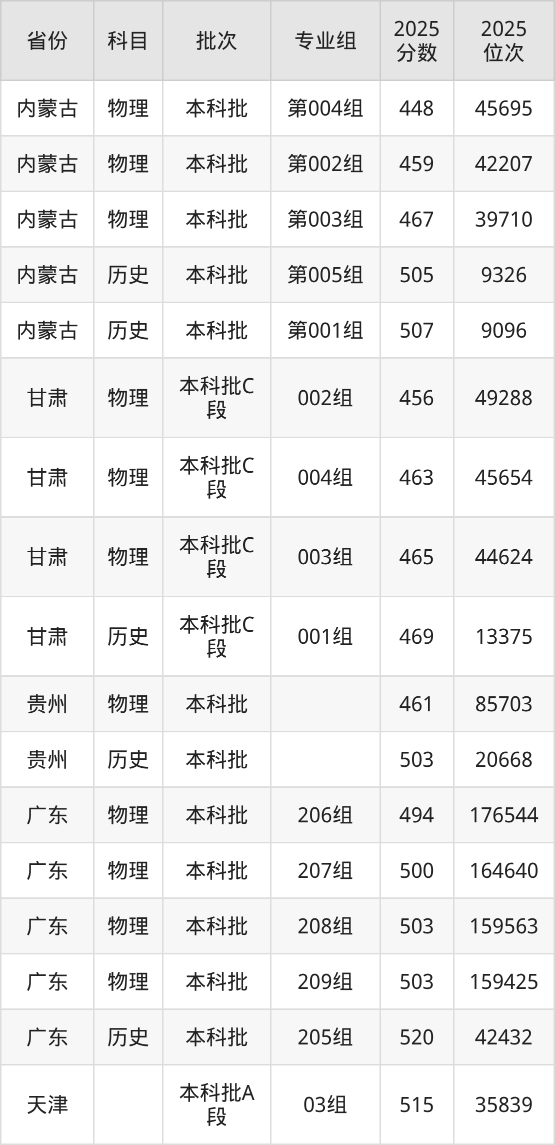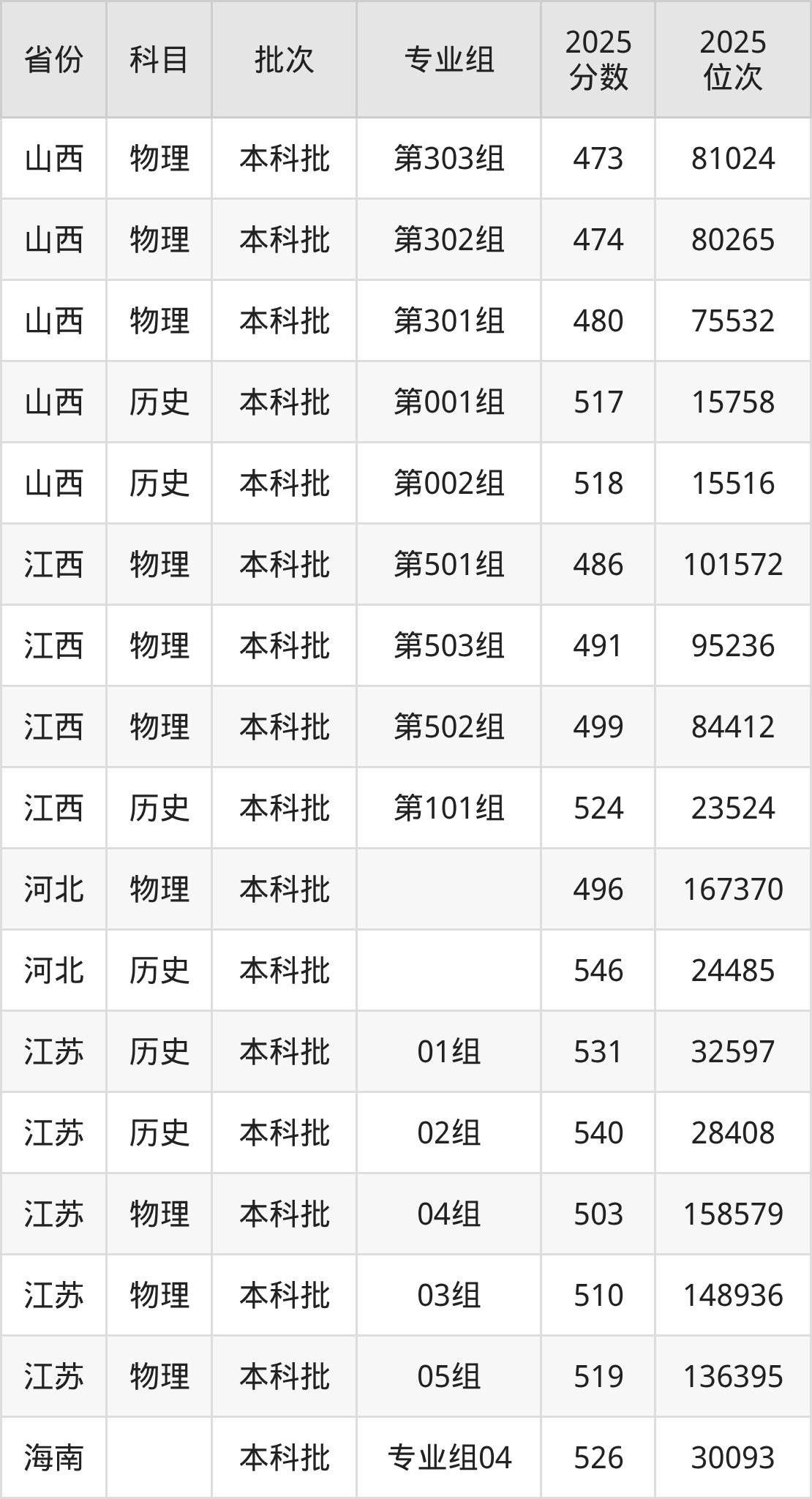 2025年投档录取最低分为461分,录取最低位次为85703名。