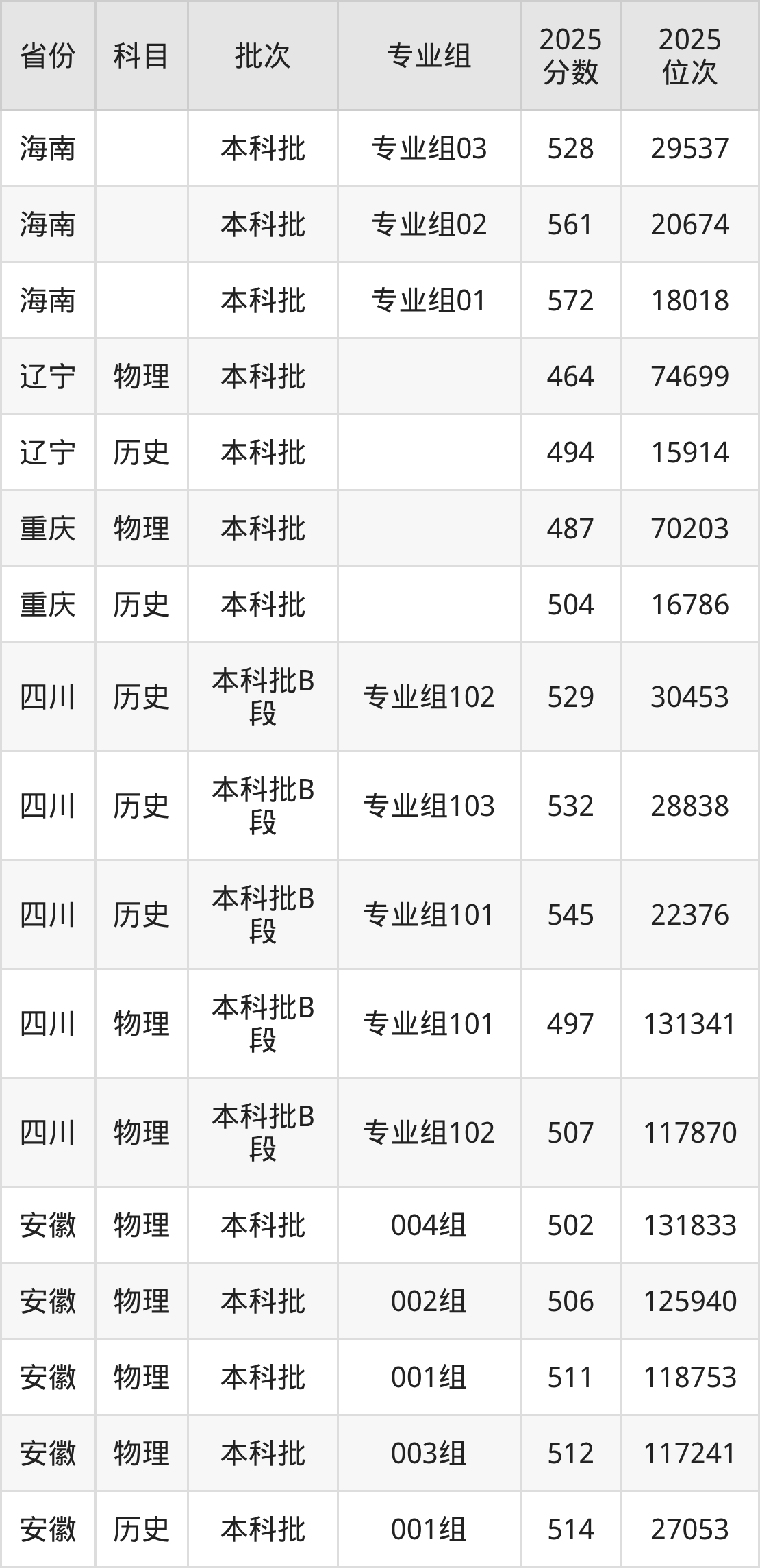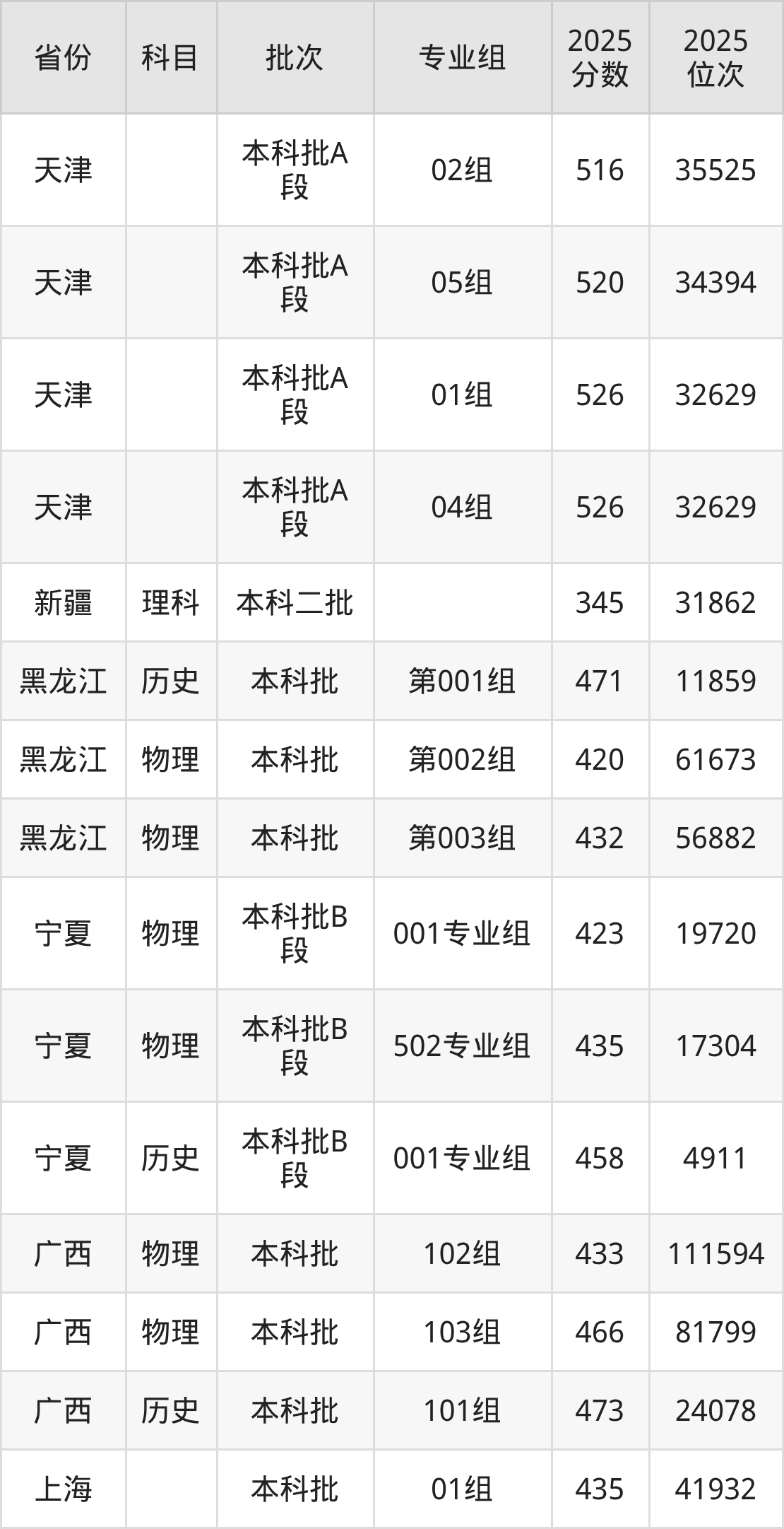 2025年投档录取最低分为503分,录取最低位次为20668名。