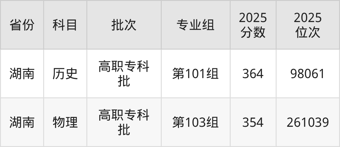 长沙幼儿师范高等专科学校第101组:2025年投档录取最低分为364分,录取最低位次为98061名。