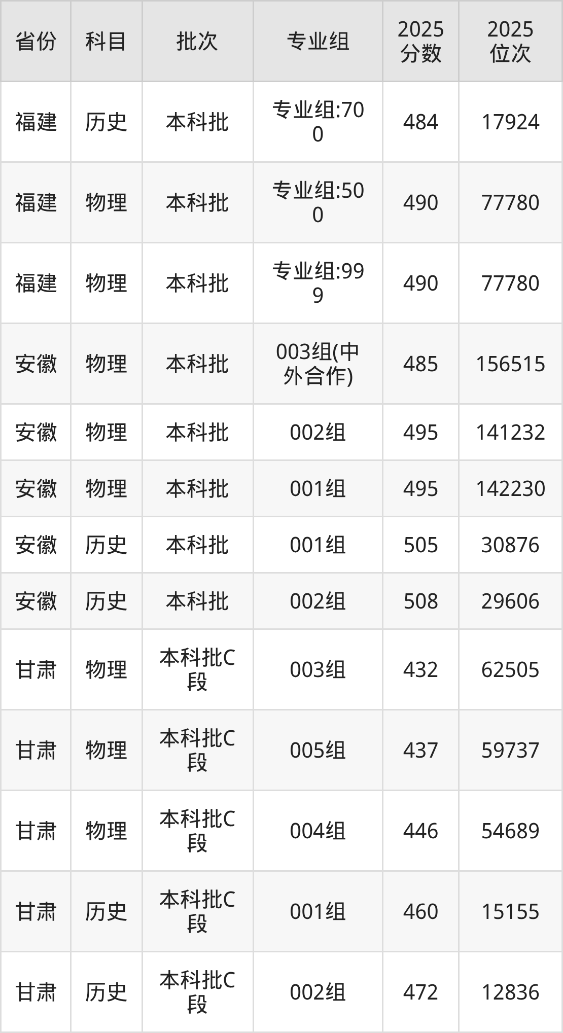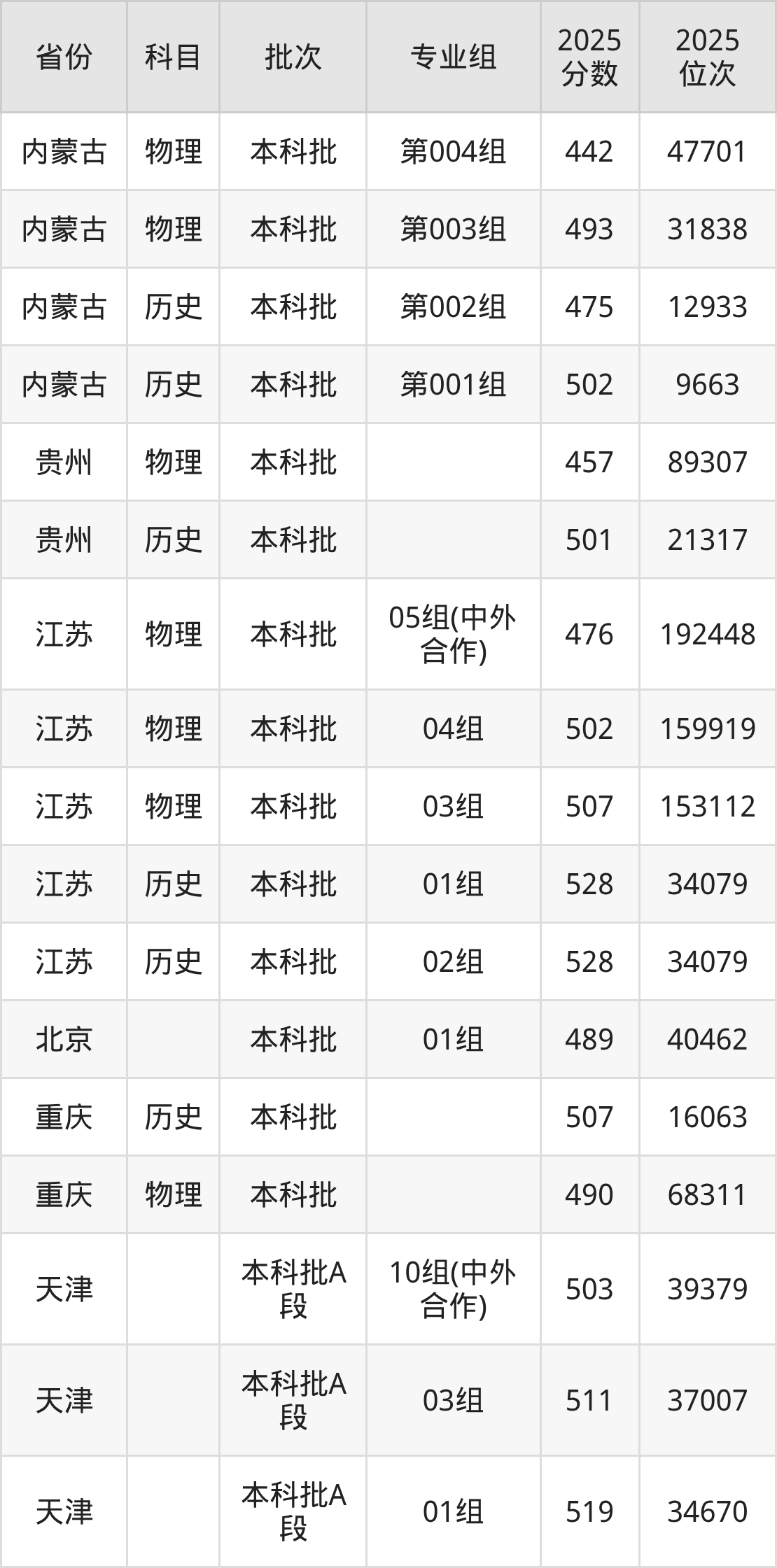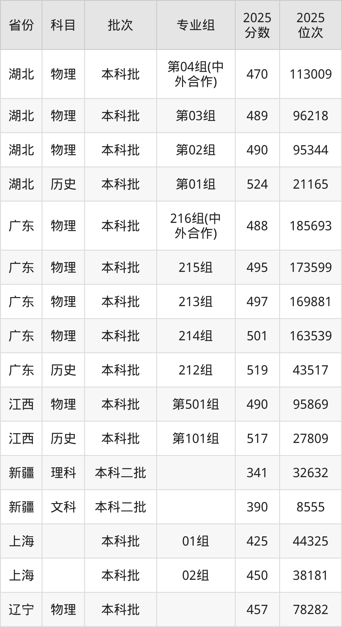 数学与应用数学(中外合作办学):2025年投档录取最低分为484分。