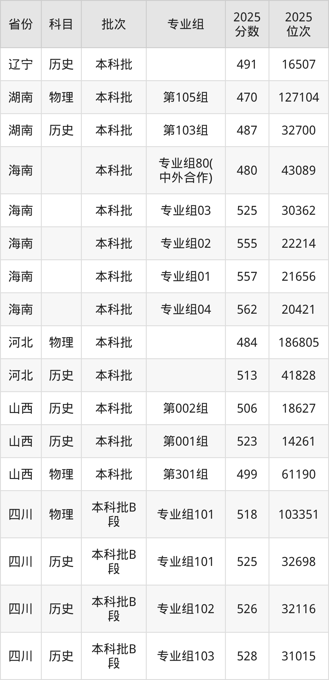 2025年投档录取最低分为490分,录取最低位次为68311名。