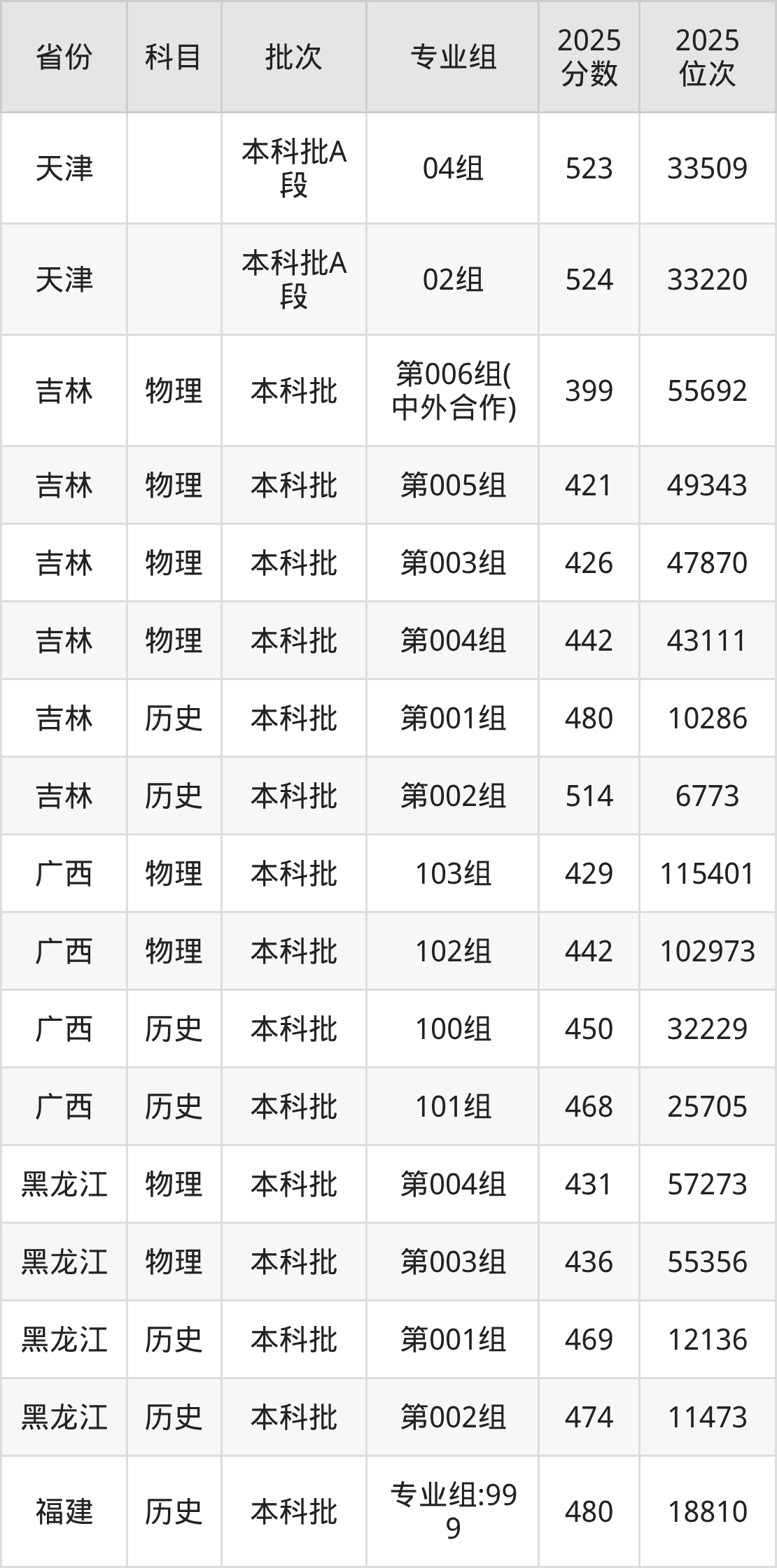 2025年投档录取最低分为507分,录取最低位次为16063名。