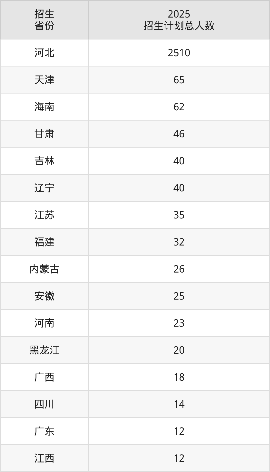 2025年衡水学院面向全国27个省市开展本科招生;招生专业共40个,招生人数共3053人。