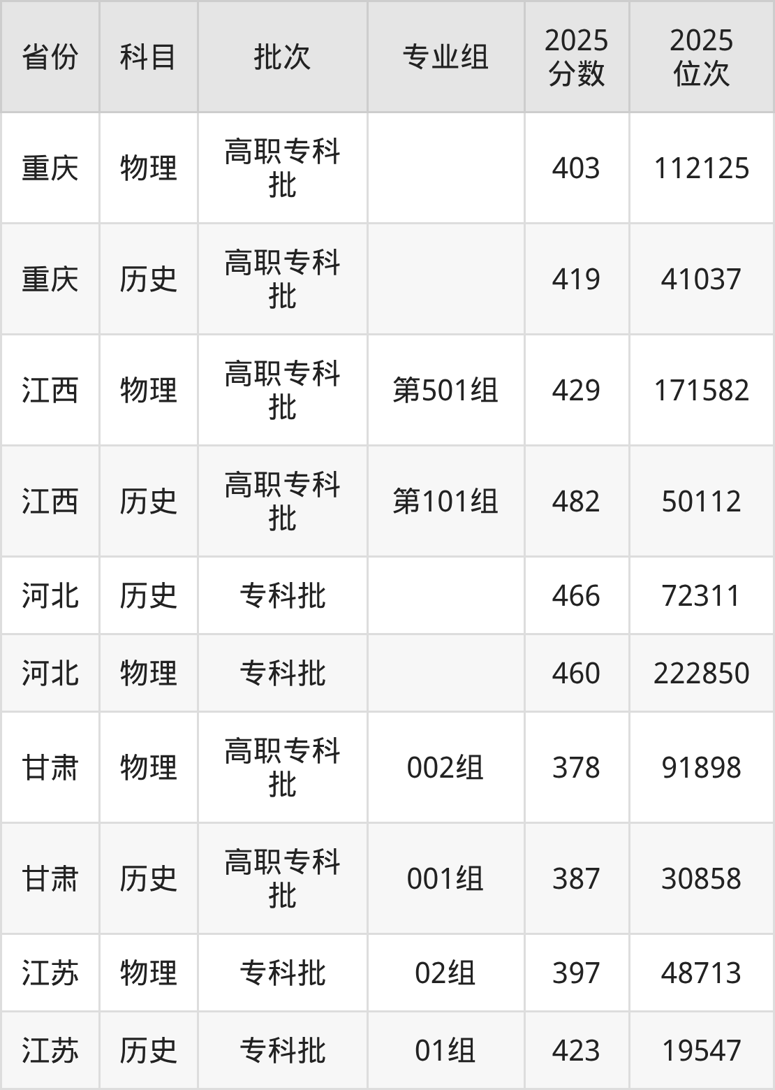 下面是2025年江苏城市职业学院全国录取分数线一览表,请查阅。