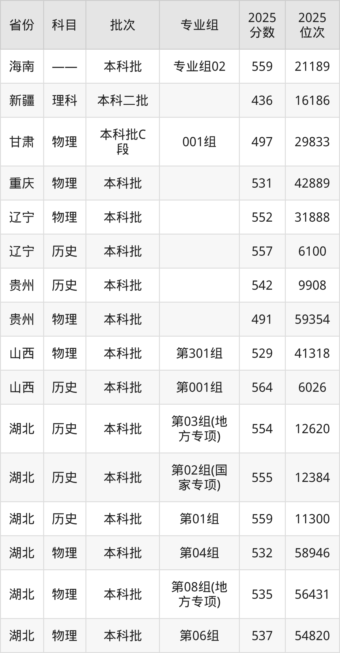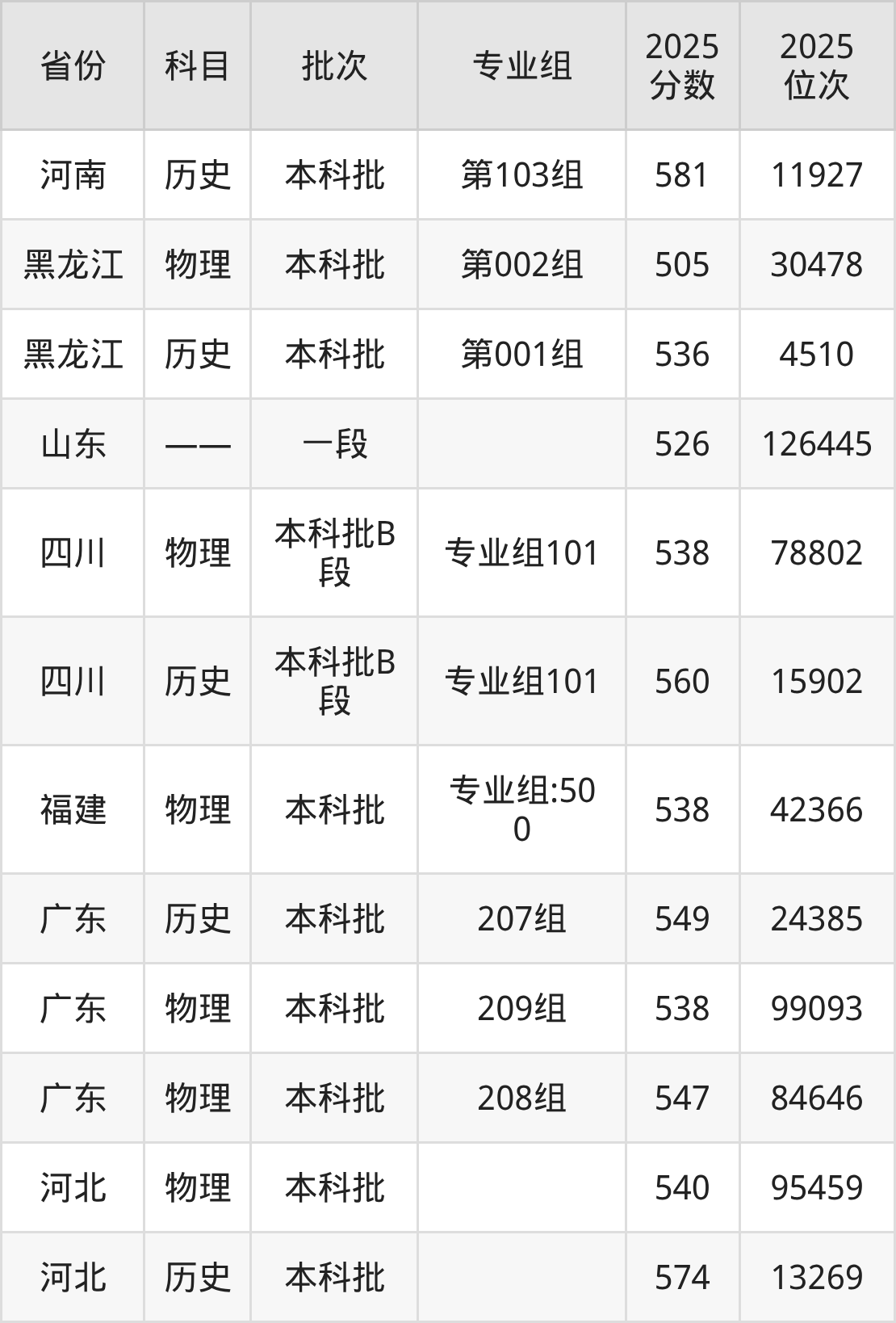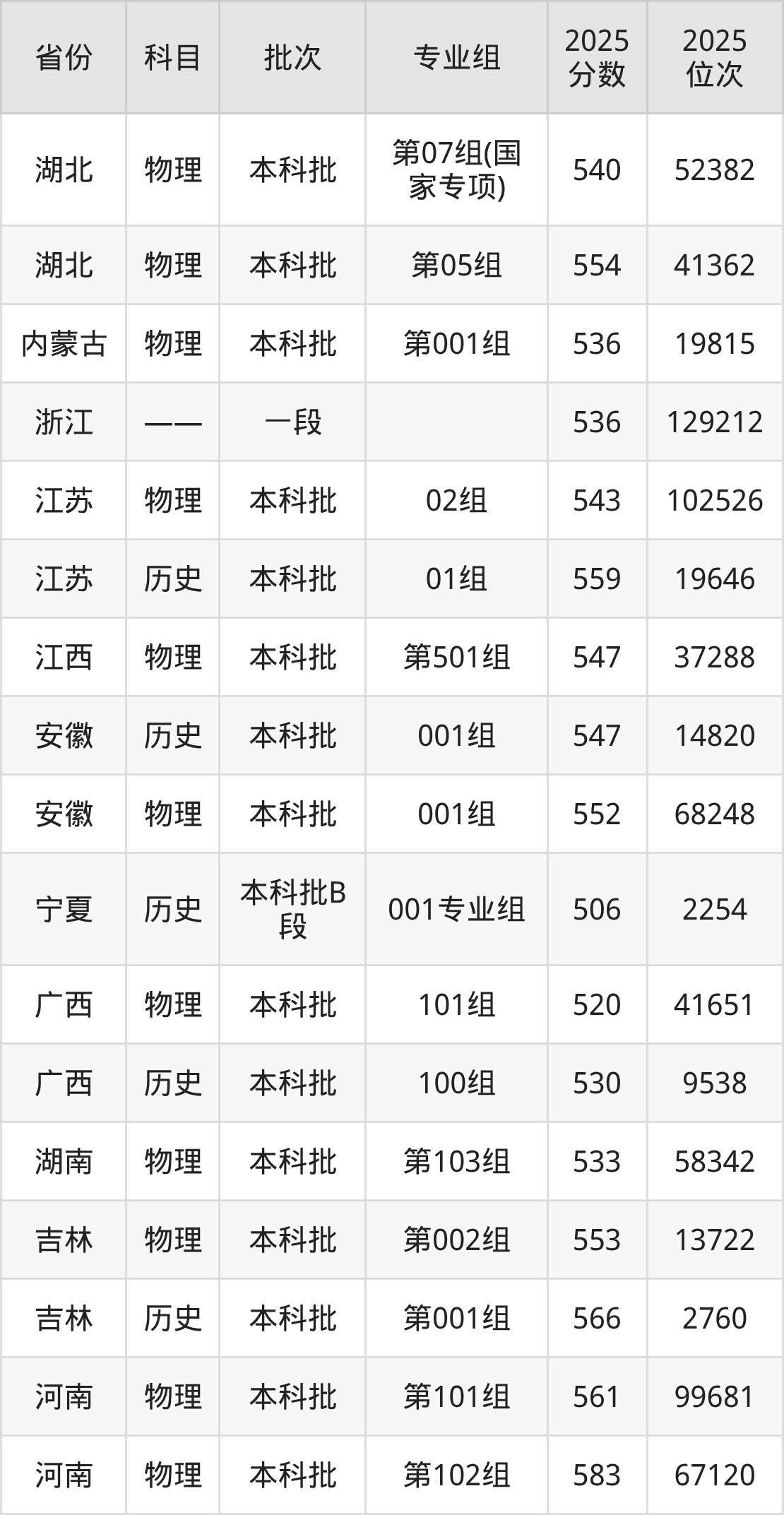 普通类本科物理类最低538分,本科历史类最低549分