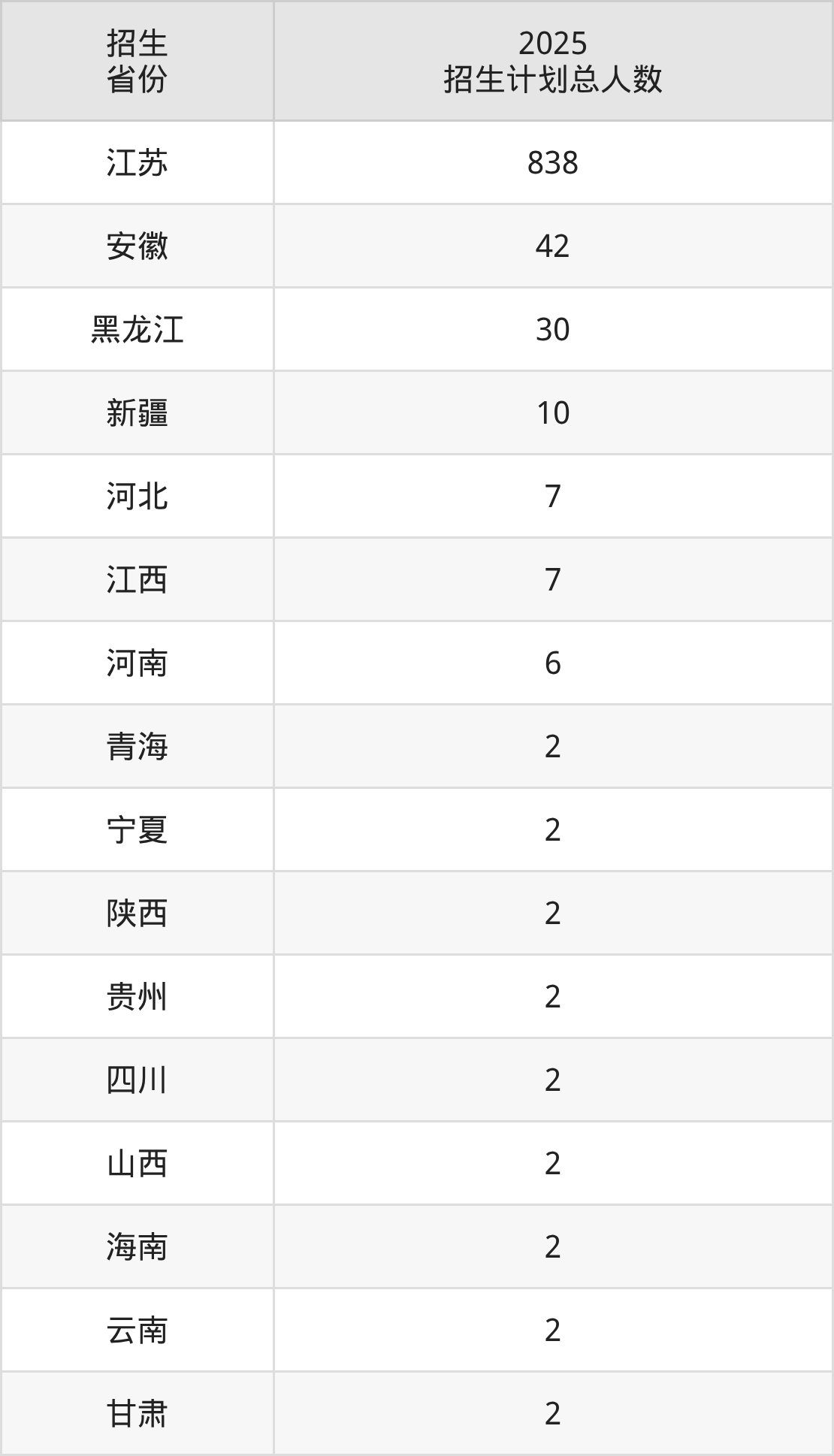 2025年九州职业技术学院面向全国20个省市开展专科招生;招生专业共34个,招生人数共966人。2025年在江苏省招生计划总人数是838人,其中,九州职业技术学院在江苏省招生人数最多的是护理。九州职业技术学院在各省具体招生人数情况如下表。