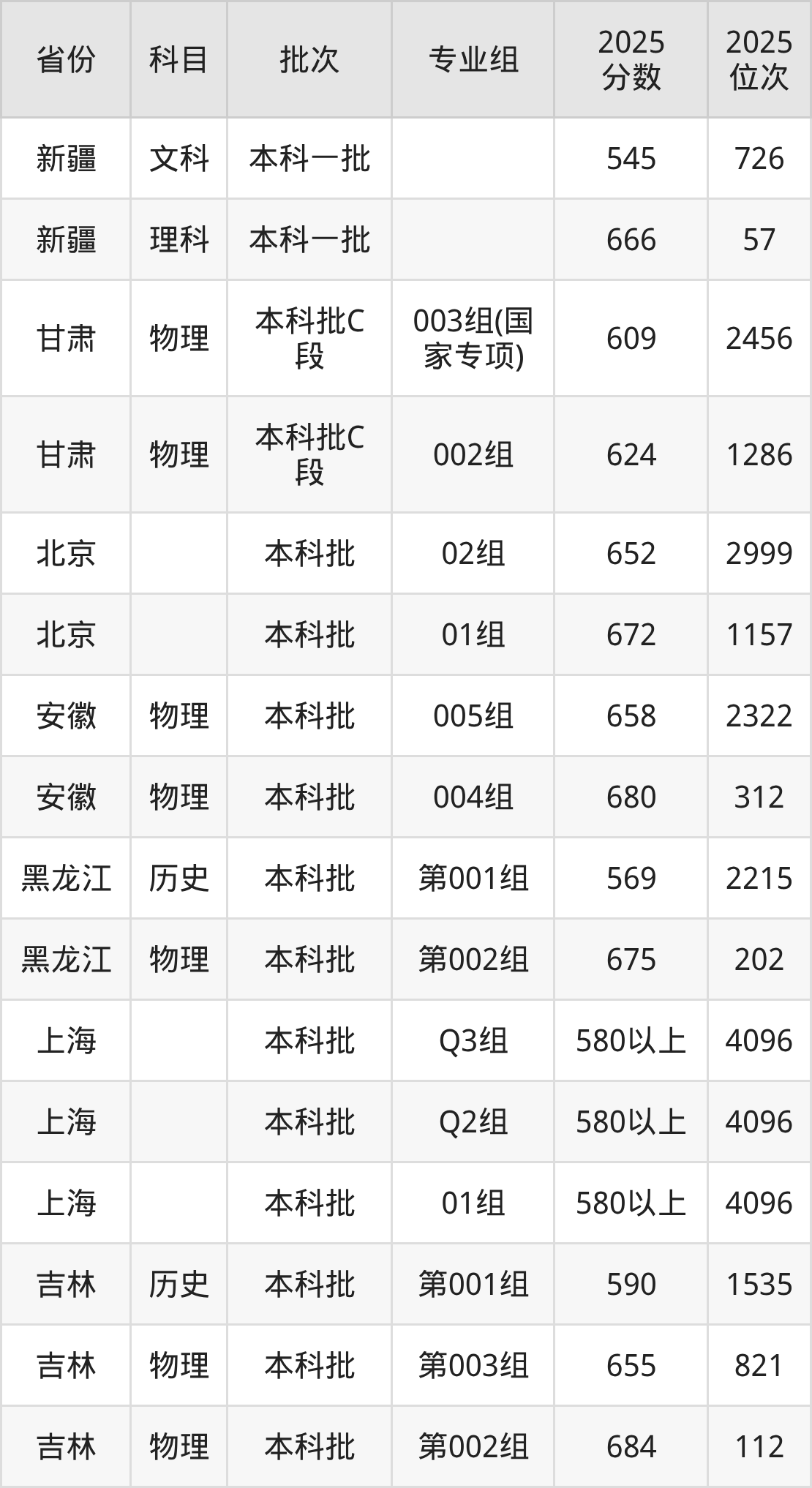 2025年投档录取最低分为666分,录取最低位次为57名。