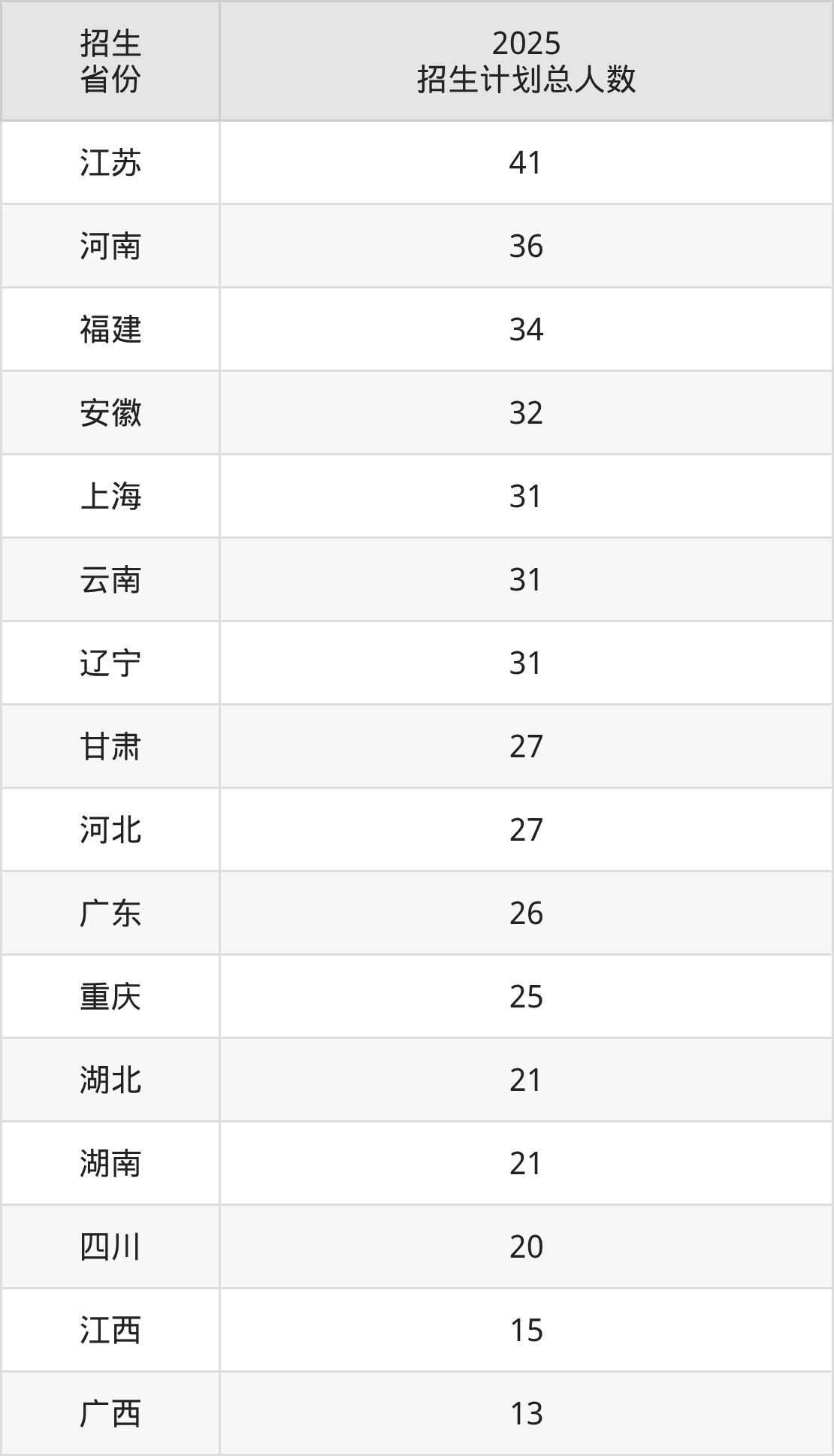 2025年复旦大学上海医学院面向全国28个省市开展本科招生;招生专业共9个,招生人数共491人。2025年在上海市招生计划总人数是31人,其中,复旦大学上海医学院在上海市招生人数最多的是护理学。复旦大学上海医学院在各省具体招生人数情况如下表。