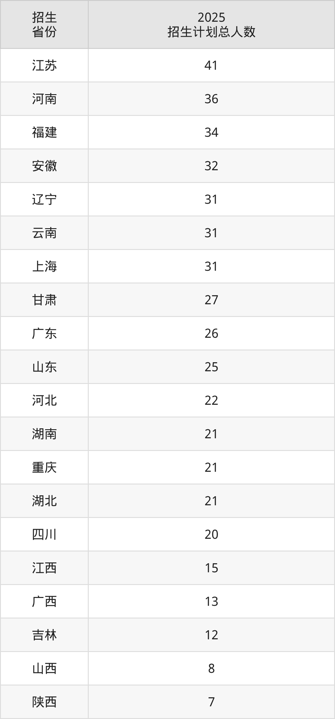 2025年复旦大学上海医学院面向全国29个省市开展本科招生;招生专业共9个,招生人数共507人。2025年在上海市招生计划总人数是31人,其中,复旦大学上海医学院在上海市招生人数最多的是护理学。复旦大学上海医学院在各省具体招生人数情况如下表。