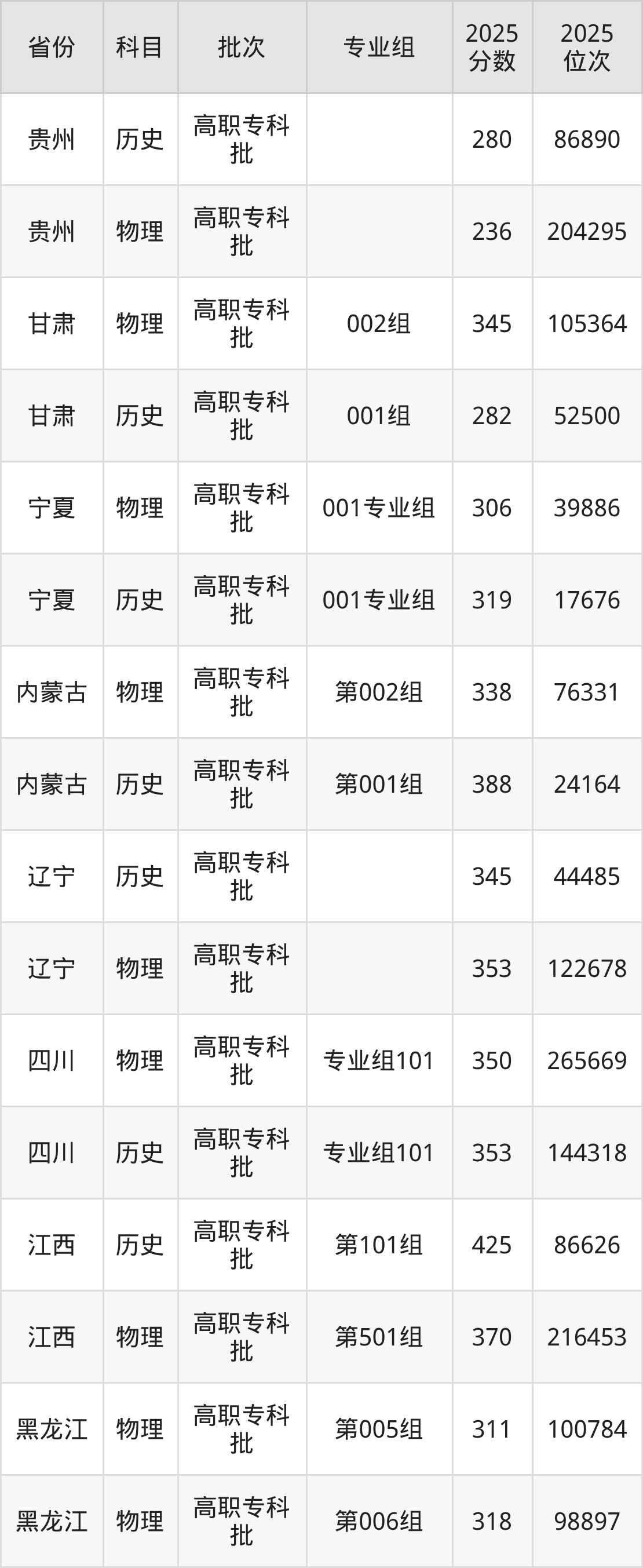 下面是2025年黑龙江职业学院全国录取分数线一览表,请查阅。