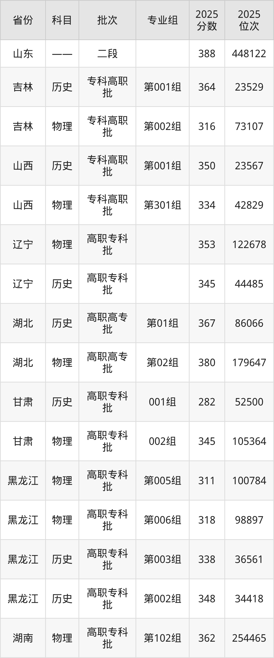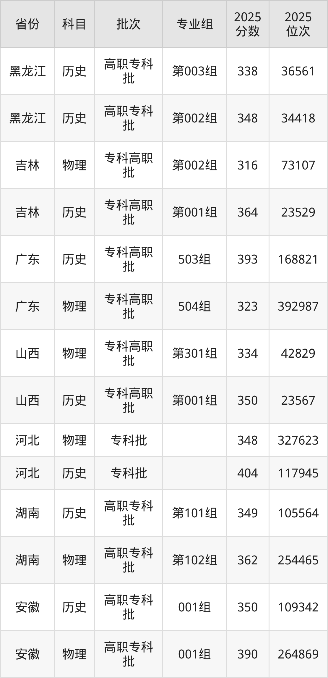 黑龙江职业学院第003组:2025年投档录取最低分为338分,录取最低位次为36561名。